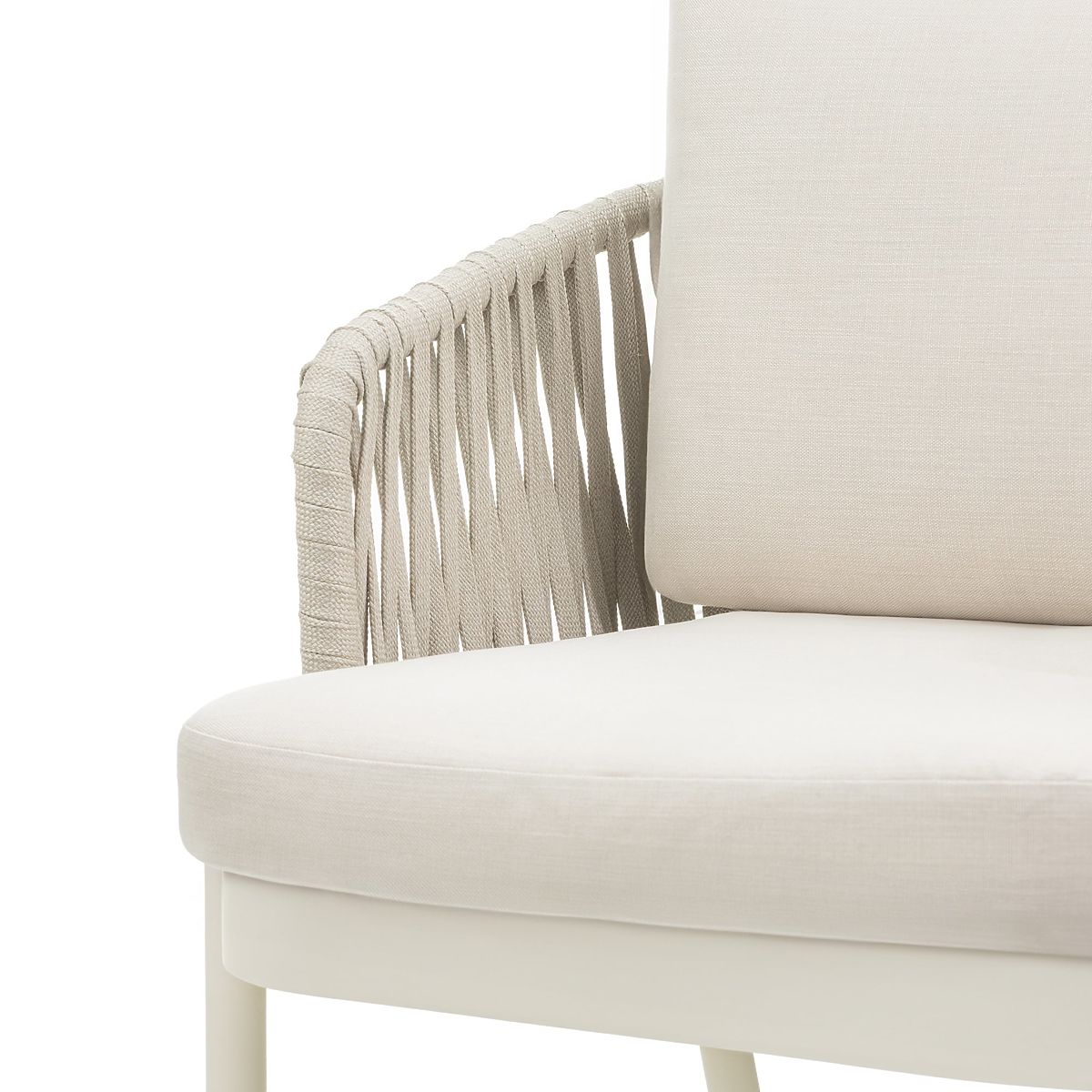 Stoličky zaujmú výnimočným komfortom – vďaka pleteným operadlám z trvanlivého lana a mäkkým vankúšom z hydrofóbnej látky. Je to ideálne miesto na oddych s šálkou kávy, knihou alebo počas dlhých rozhovorov s blízkymi.