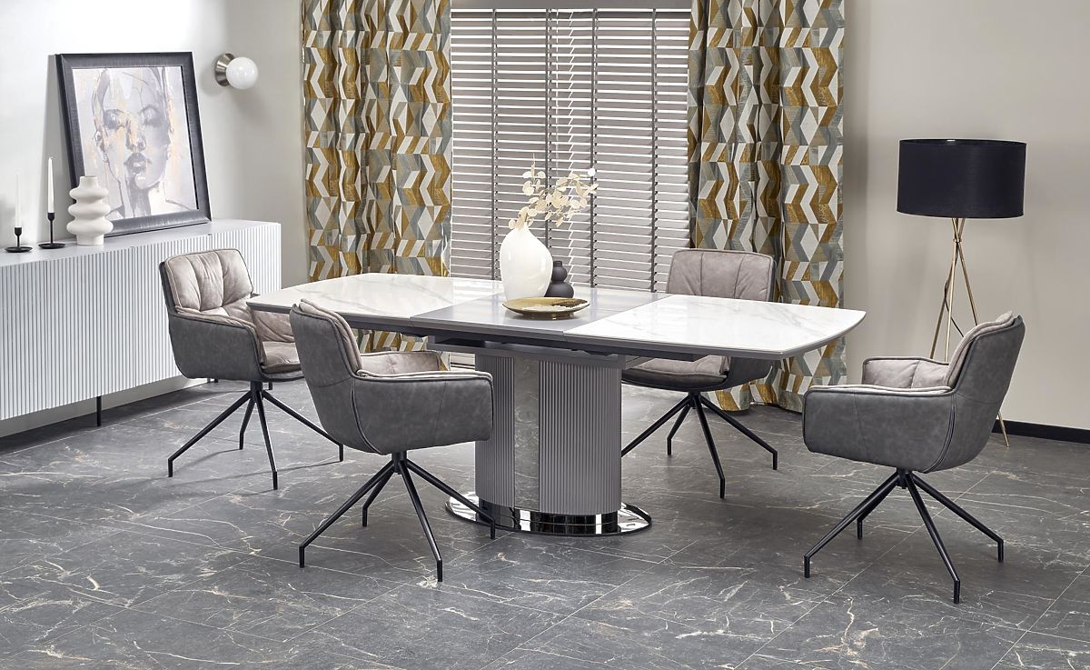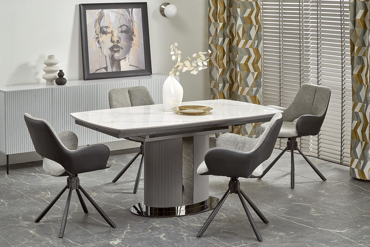 Rozkladací stôl s bielym mramorom a šedými odtieňmi. .. viac