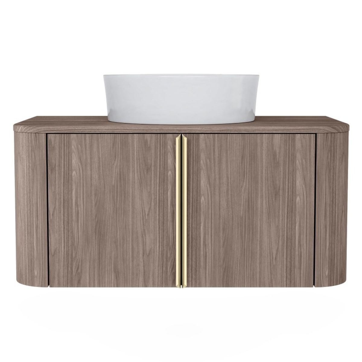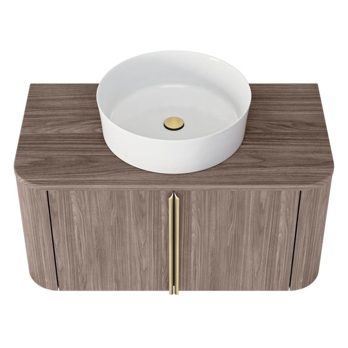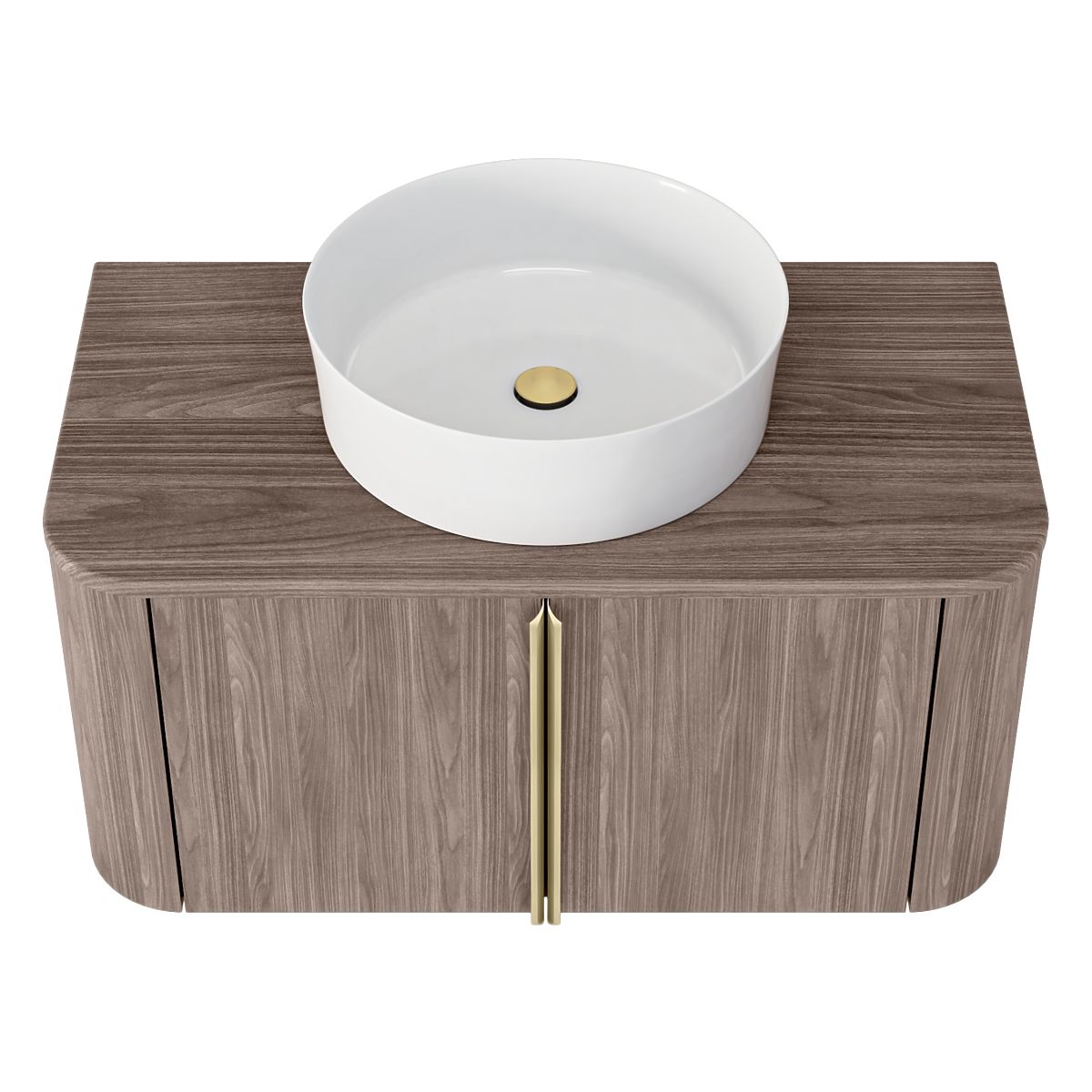 Lukahome.sk » Kúpeľňa a WC / Kúpeľňové skrinky / Skrinka pod umývadlo na dosku Bassa 80 cm, orech lincoln, zlaté úchyty, zaoblená