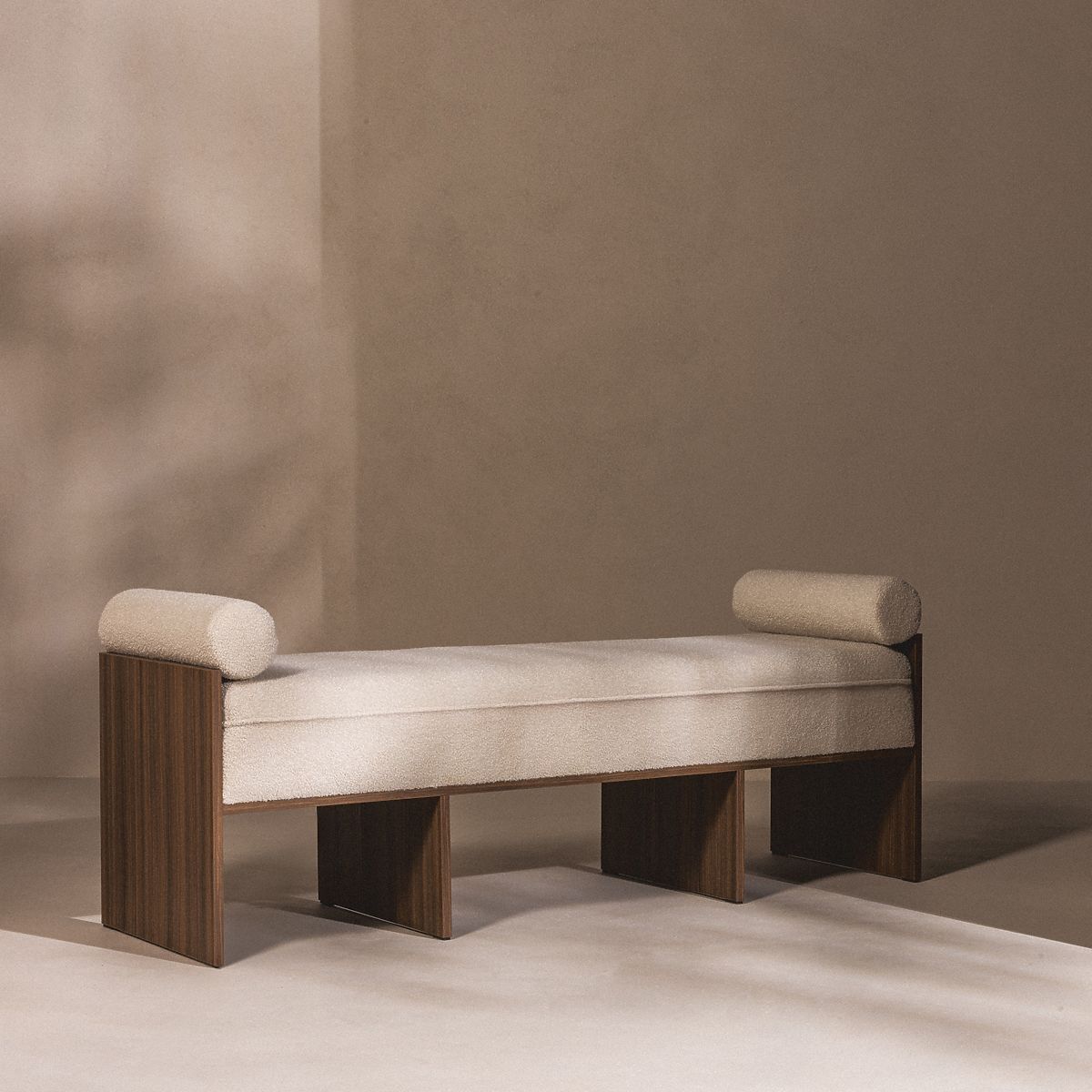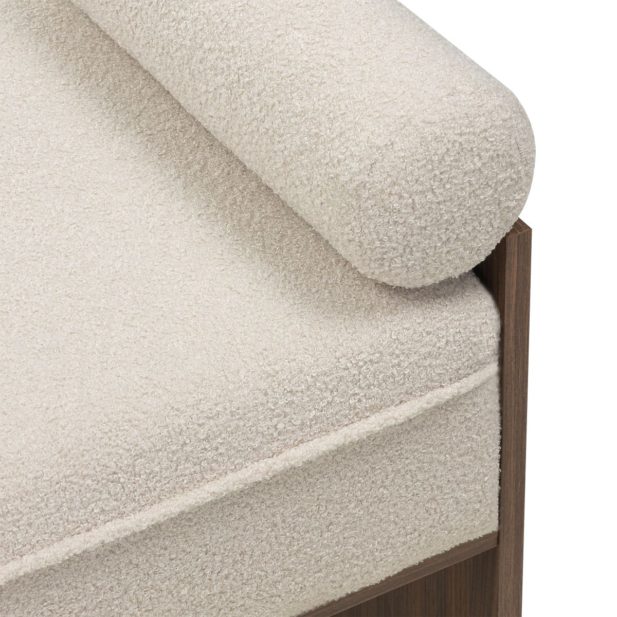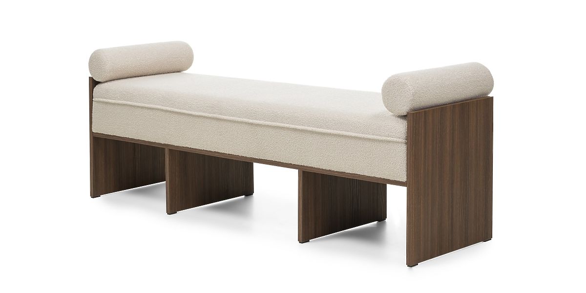 Lukahome.sk » Kreslá a sedenie / Lavica / Čalúnená lavica Loppo svetlo béžová, boucle, Orech Wisconsin