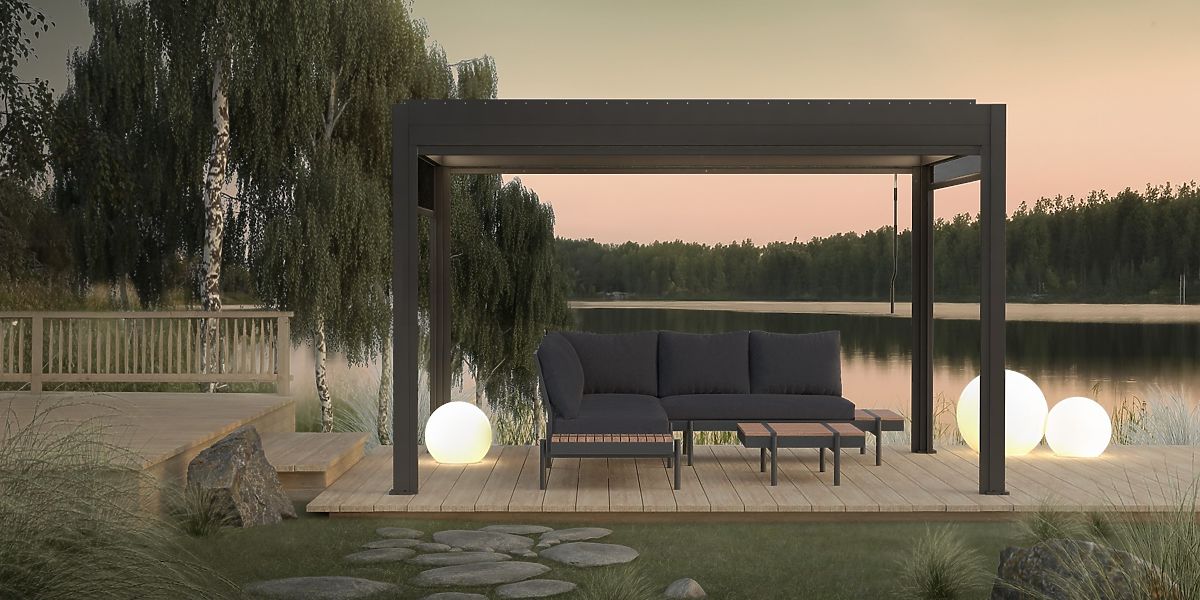 Objavte neobmedzené možnosti relaxácie a trávenia času na čerstvom vzduchu vďaka záhradnej pergole Antilla! Táto voľne stojaca konštrukcia z pevného hliníka nielenže dodáva eleganciu a funkčnosť vašej záhrade, ale tiež vytvára priestor pre odpočinok a nezabudnuteľné chvíle s blízkymi. Pergola je ideálnym miestom pre usporiadanie jedálne "pod holým nebom", kde romantické večere, rodinné obedy či organizovanie osláv nadobúdajú nový, magický rozmer. Pevnosť a elegancia idú ruka v ruke - hliníková konštrukcia pergoly Antilla nielenže očarí moderným dizajnom, ale aj výnimočnou odolnosťou. Je odolná proti korózii a vydrží vietor o rýchlosti až 120 km/h a zaťaženie snehom až 60 kg/m². Jej strecha sa skladá z pohyblivých lamiel, ktorých uhol sklonu možno prispôsobiť poveternostným podmienkam pomocou pohodlnej kľuky. Panely nielenže regulujú prístup svetla, ale aj zaručujú 100% vodotesnosť po ich uzavretí, účinne chránia pred dažďom a nadmerným slnečným žiarením. Naše lamely v pergolách sú 100% hliníkové – ľahké, odolné proti korózii a mimoriadne trvanlivé. Na rozdiel od oceľových riešení nehrdzavejú a nezaťažujú konštrukciu. Navyše zabezpečujú ideálnu cirkuláciu vzduchu, čím vytvárajú komfortnú atmosféru počas používania. Premyslená konštrukcia pergoly umožňuje efektívny odvod dažďovej vody a všetky prvky systému sú diskrétne ukryté vo vnútri každej zo štyroch nôh, čo zachováva estetický vzhľad. Bioklimatická pergola Antilla má potrebné atesty a certifikáty potvrdzujúce splnenie najvyšších štandardov, vďaka čomu sa skvele hodí ako na súkromné terasy a záhrady, tak do komerčných priestorov, ako sú reštaurácie a hotelové záhradky. Pergola je určená na samostatnú montáž - v sade nájdete všetko potrebné na vytvorenie vlastnej oázy relaxácie a jasné pokyny krok za krokom urobia proces montáže jednoduchým a uspokojivým. Aby bol váš odpočinok ešte príjemnejší, môžete svoju pergolu vybaviť za príplatok doplnkami. Záves z ľahko čistiteľnej tkaniny v bielej farbe nielenže poskytuje dodatočnú ochranu pred slnkom, ale aj priehľadnosť, čím vytvára atmosféru ľahkosti a slobody. A ak vám záleží na komplexnej ochrane, zvoľte roletu typu screen. Vyrobená z tkaniny odolnej voči poveternostným vplyvom, chráni pred UV žiarením, ľahkým vetrom a dažďom a tiež pred hmyzom, pričom zároveň ponúka príjemné zatienenie. Môžete sa rozhodnúť, ako a na koľkých stenách pergoly chcete závesy alebo rolety namontovať. K tomu je potrebné vybrať v konfigurátore ich počet a veľkosť prispôsobenú šírke steny (372,5 a 268 cm). Ale to ešte nie je všetko! Aby ste sa ponorili do magickej atmosféry večera, zvoľte náladové LED osvetlenie. Môžete si vybrať medzi tradičným s diaľkovým ovládaním a riadiacou skrinkou alebo energeticky úsporným solárnym osvetlením, ktoré funguje vďaka solárnemu panelu a vstavanému akumulátoru.