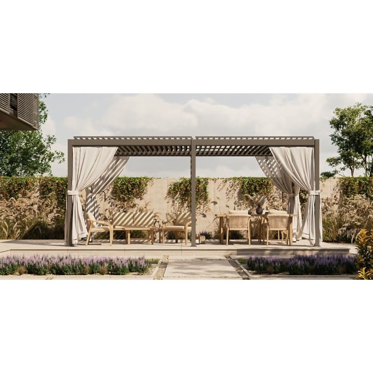 Objavte neobmedzené možnosti relaxácie a trávenia času na čerstvom vzduchu vďaka záhradnej pergole Antilla! Táto voľne stojaca konštrukcia z pevného hliníka nielenže dodáva eleganciu a funkčnosť vašej záhrade, ale tiež vytvára priestor na oddych a vytváranie nezabudnuteľných chvíľ s blízkymi. Jej impozantný rozmer - 6x3 m - ponúka oveľa väčšiu funkčnosť a flexibilitu využitia v porovnaní s menšími modelmi. Veľká priestrannosť umožňuje rozdelenie na rôzne časti, napr. jedálenskú a oddychovú, a vytvorenie komfortnej relaxačnej zóny, obohatenej o inovatívne riešenia, ako sú audio systémy alebo projekčné plátna na sledovanie filmov. Vďaka väčším rozmerom sa pergola stane srdcom záhrady alebo terasy, pohodlne pojme oddychové súpravy a záhradné zostavy. Takéto riešenie poskytuje väčšie pohodlie pri spoločenských stretnutiach a tiež lepšie oddelenie od okolia, zvyšujúce pocit súkromia. Navyše, pergola 3x6 m môže ľahko pojmúť dve stredne veľké autá, poskytujúc ich zastrešenie, ktoré chráni pred dažďom, snehom a škodlivým UV žiarením. Pevnosť a elegancia idú ruka v ruke - hliníková konštrukcia pergoly Antilla nielenže očarí moderným dizajnom, ale aj výnimočnou odolnosťou. Je odolná voči korózii a vydrží vietor o rýchlosti až 120 km/h a zaťaženie snehom až 60 kg/m². Jej strecha sa skladá z pohyblivých lamiel, ktorých uhol sklonu možno prispôsobiť poveternostným podmienkam pomocou dvoch pohodlných kľúk. Panely nielenže regulujú prístup svetla, ale tiež zaručujú 100% vodotesnosť po ich uzavretí, účinne chránia pred dažďom a nadmerným slnečným žiarením. Naše lamely v pergolách sú 100% hliníkové - ľahké, odolné voči korózii a mimoriadne trvanlivé. Na rozdiel od oceľových riešení nehrdzavejú a nezaťažujú konštrukciu. Navyše zabezpečujú ideálnu cirkuláciu vzduchu, vytvárajúcu pohodlnú atmosféru pri používaní. Premyslená konštrukcia pergoly umožňuje efektívny odvod dažďovej vody a všetky prvky systému boli diskrétne skryté vo vnútri každej zo štyroch nôh, vďaka čomu celok zachováva estetický vzhľad. Bioklimatická pergola Antilla má potrebné atesty a certifikáty potvrdzujúce splnenie najvyšších štandardov, vďaka čomu sa dokonale hodí ako na súkromné terasy a záhrady, tak v komerčných priestoroch, ako sú reštauračné a hotelové záhradky. Pergola je určená na samostatnú montáž - v sade nájdete všetko potrebné na vytvorenie vlastnej oázy relaxácie a jasné pokyny krok za krokom urobia proces montáže jednoduchým a uspokojivým. Aby bol váš odpočinok ešte príjemnejší, môžete svoju pergolu vybaviť dodatočne platenými doplnkami. Záves z ľahko čistiteľnej tkaniny v bielej farbe nielenže poskytuje dodatočnú ochranu pred slnkom, ale aj priehľadnosť, vytvárajúcu atmosféru ľahkosti a slobody. A ak vám záleží na komplexnej ochrane, zvoľte roletu typu screen. Vyrobená z tkaniny odolnej voči poveternostným podmienkam, chráni pred UV žiarením, ľahkým vetrom a dažďom a hmyzom, pričom ponúka príjemné zatienenie. Môžete sa rozhodnúť, ako a na koľkých stenách pergoly chcete závesy alebo rolety namontovať. K tomu je potrebné vybrať v konfigurátore ich množstvo a veľkosť prispôsobenú šírke steny. Dlhšia strana pergoly je podopretá ďalšou nohou, preto pre stenu 586 cm to bude sada dvoch roliet a závesov o šírke 278 cm každá. Ale to ešte nie je všetko! Aby sa ponorili do magickej atmosféry večera, vyberte si náladové LED osvetlenie. Môžete si vybrať medzi tradičným s diaľkovým ovládaním a kontrolnou skrinkou alebo energeticky úsporným solárnym osvetlením, ktoré funguje vďaka solárnemu panelu a vstavanéj batérii.