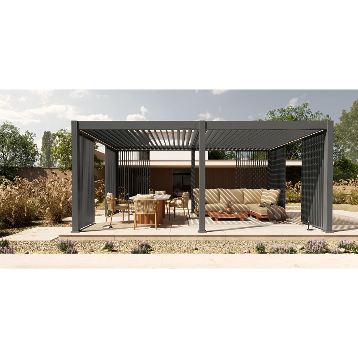 Lukahome.sk » Záhrada / Altánky / Samostatne stojaca záhradná pergola Lumera z hliníka, 4x6 m, bioklimatická, LED osvetlenie, elektric
