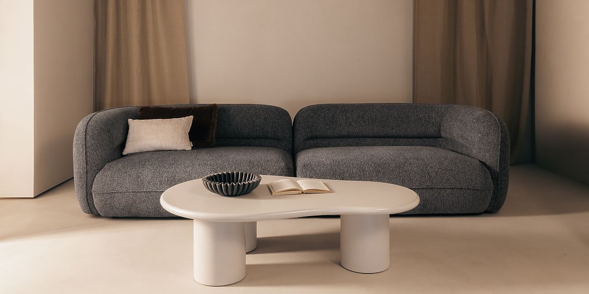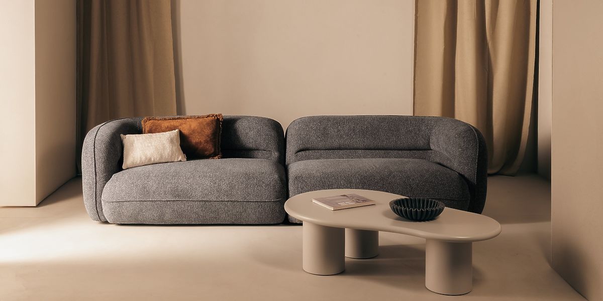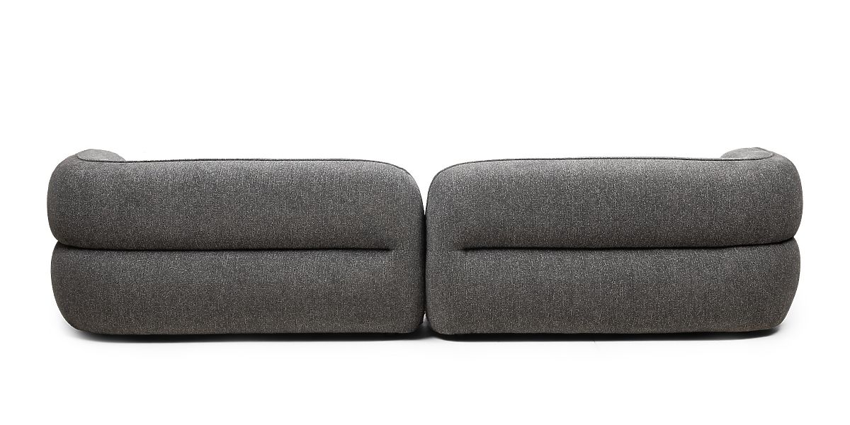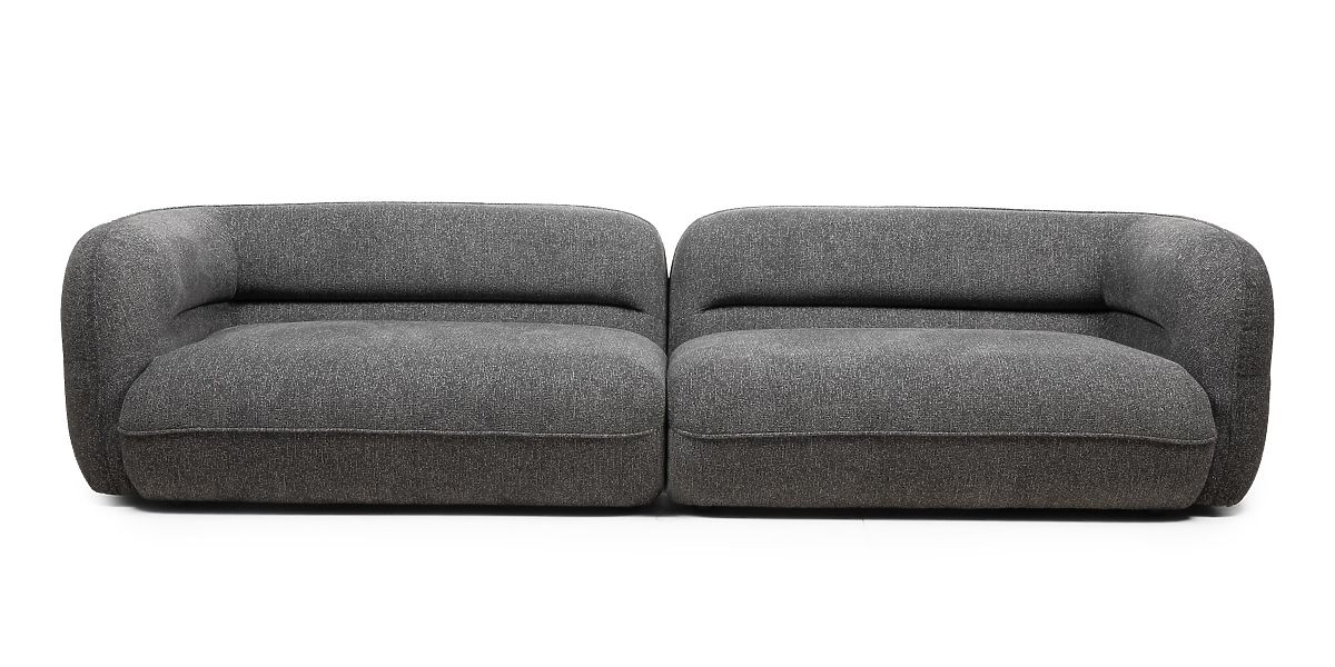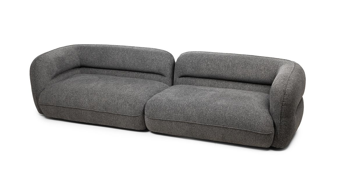 Štvormiestna pohovka Luvio s oblými tvarmi a sivým šenilovým čalúnením. .. viac