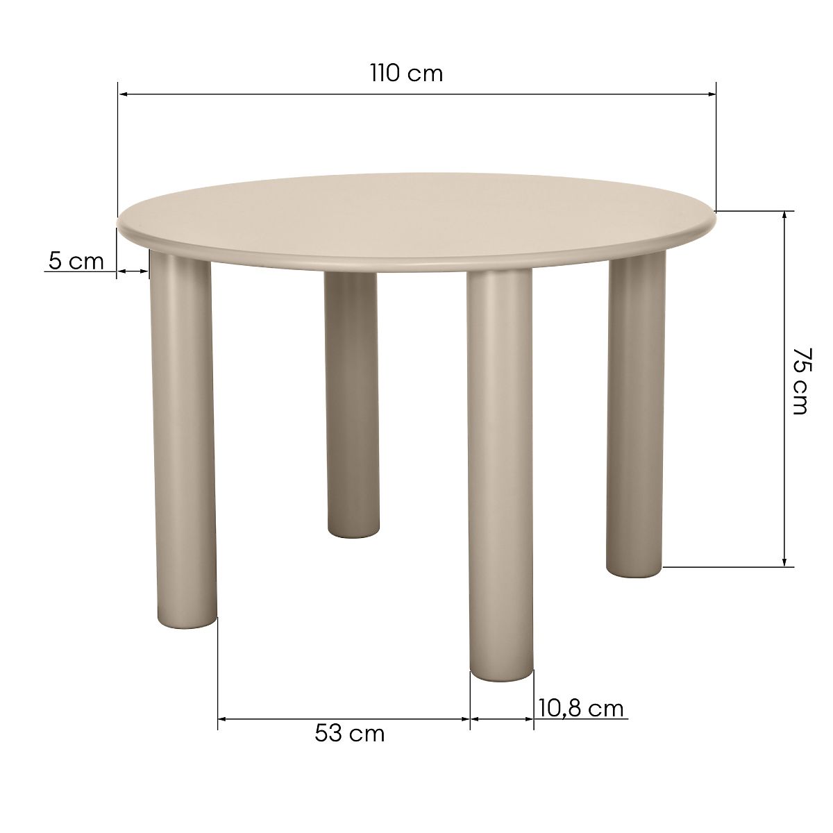 48752-0 Jedálenský stôl Joki 110 cm, okrúhly, tmavo béžový