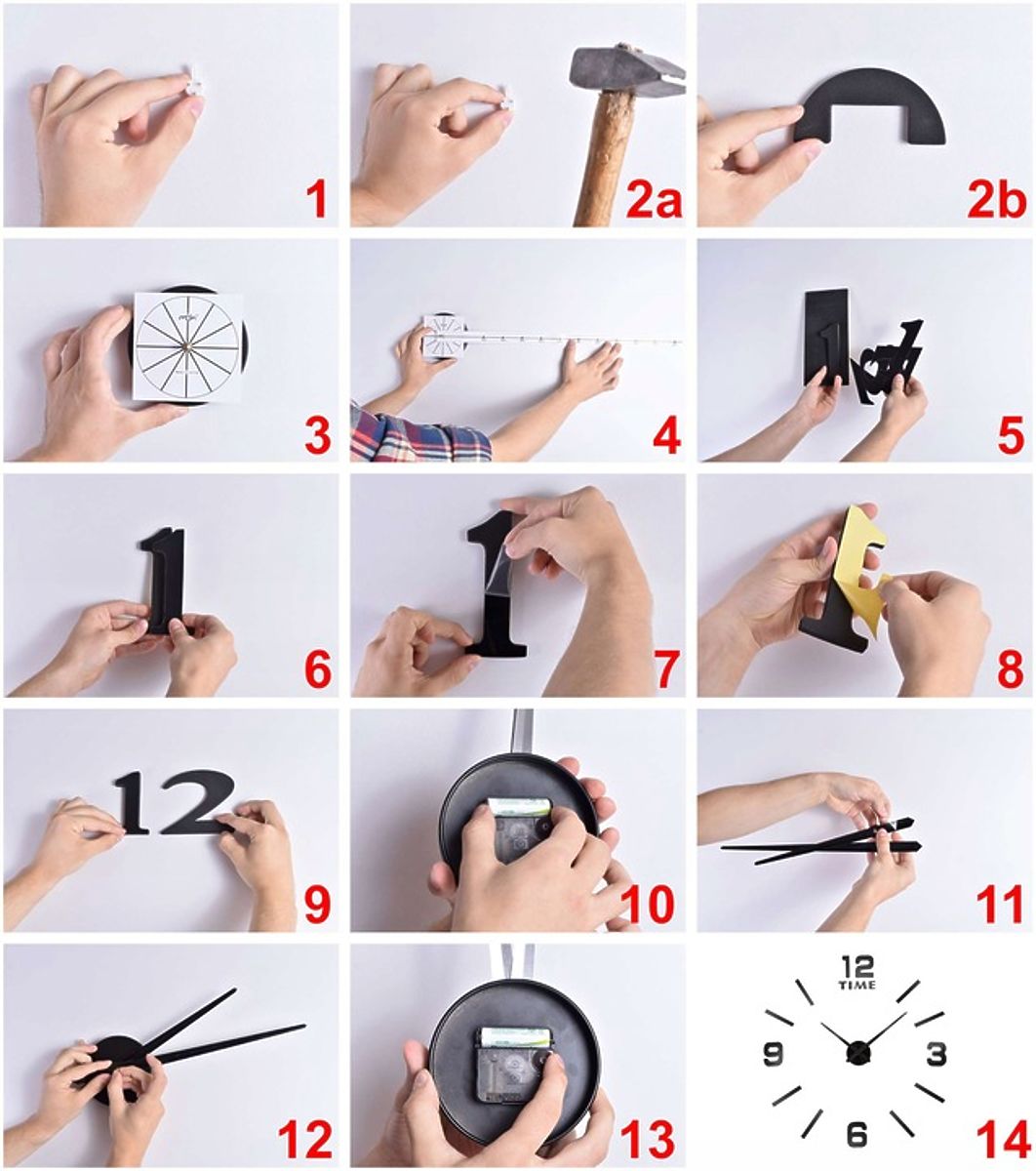 Hodiny sa pripevňujú pomocou samolepiacej pásky. Páska je na zadnej strane každého prvku.