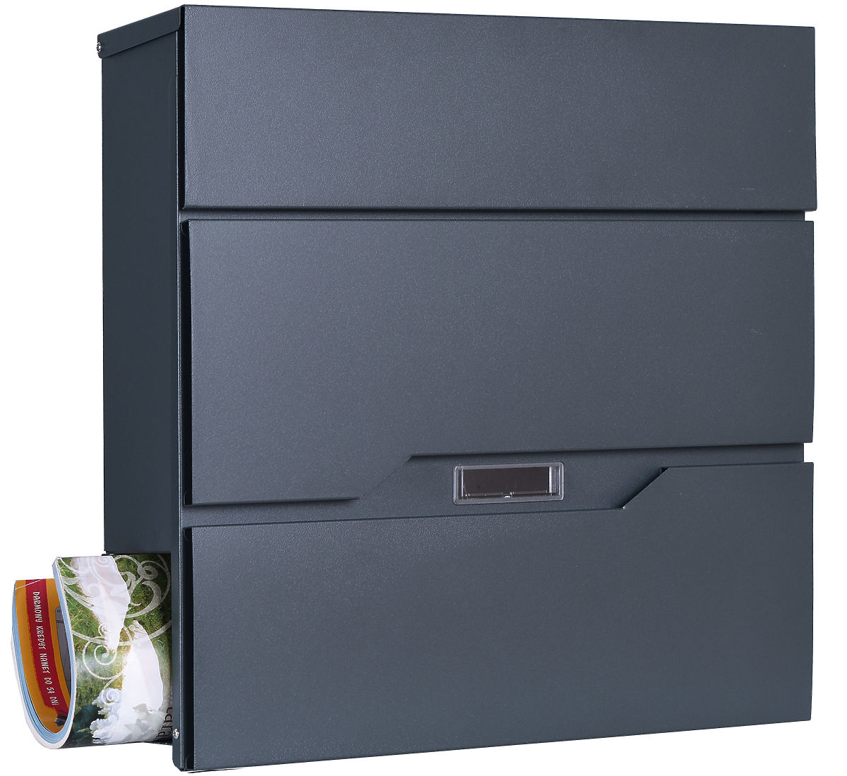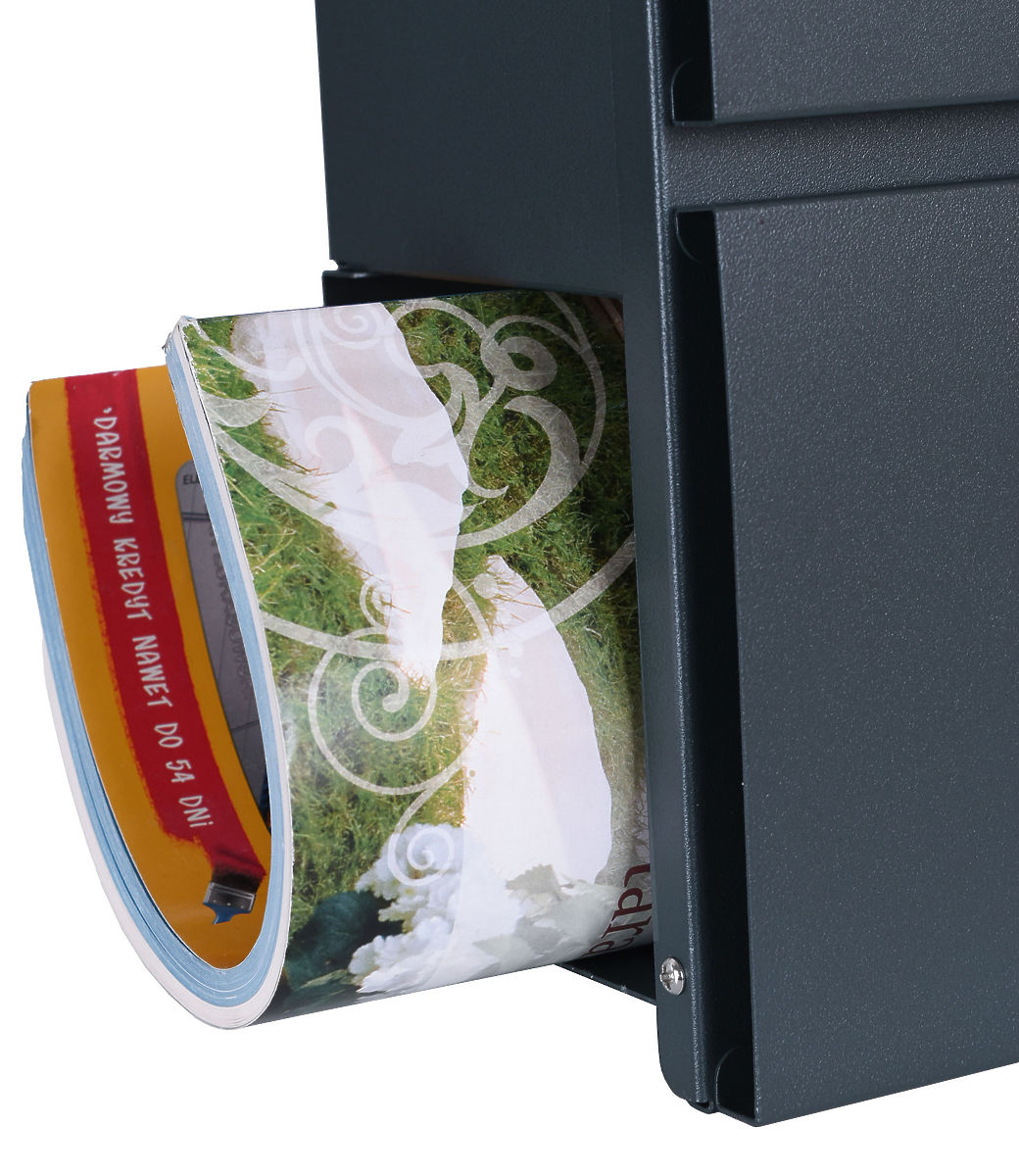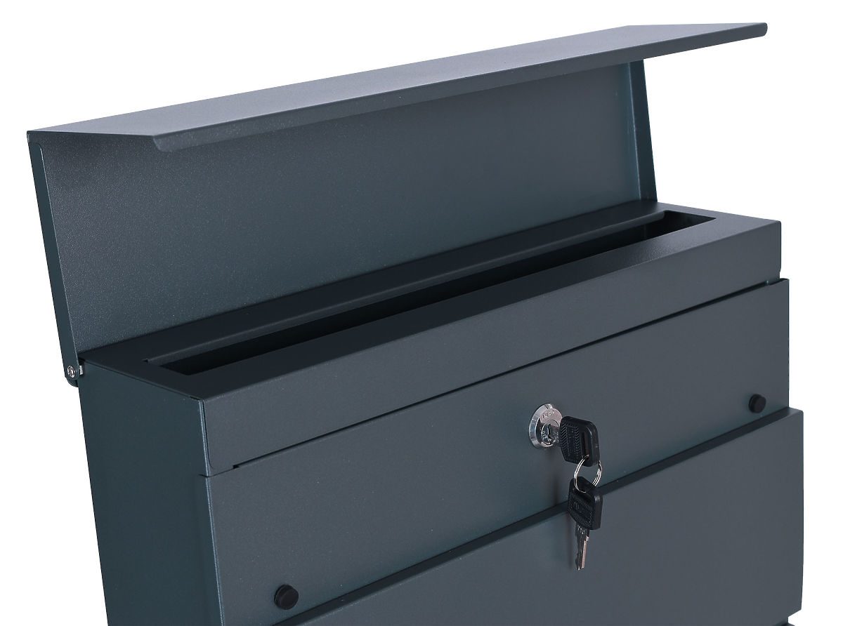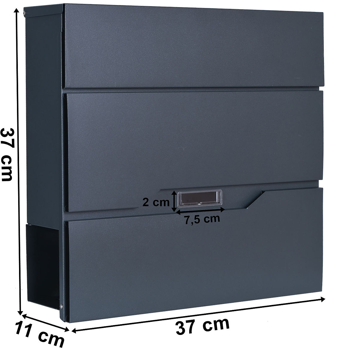 Štýlová a funkčná poštová schránka, ktorá kombinuje moderný dizajn s trvanlivosťou! Rozmery 37 x 37 x 11 cm, pevná pozinkovaná oceľ s práškovým nástrekom a odolnosť voči poveternostným vplyvom zaisťujú, že je ideálna pre vonkajšie aj vnútorné použitie. Praktické adresné okienko umožňuje okamžite vidieť čakajúcu korešpondenciu. Otvor na listy 33 x 3,5 cm, ďalšie miesto na noviny a uzamknutie na kľúč – schránka Vidar je bezpečnosť a pohodlie!