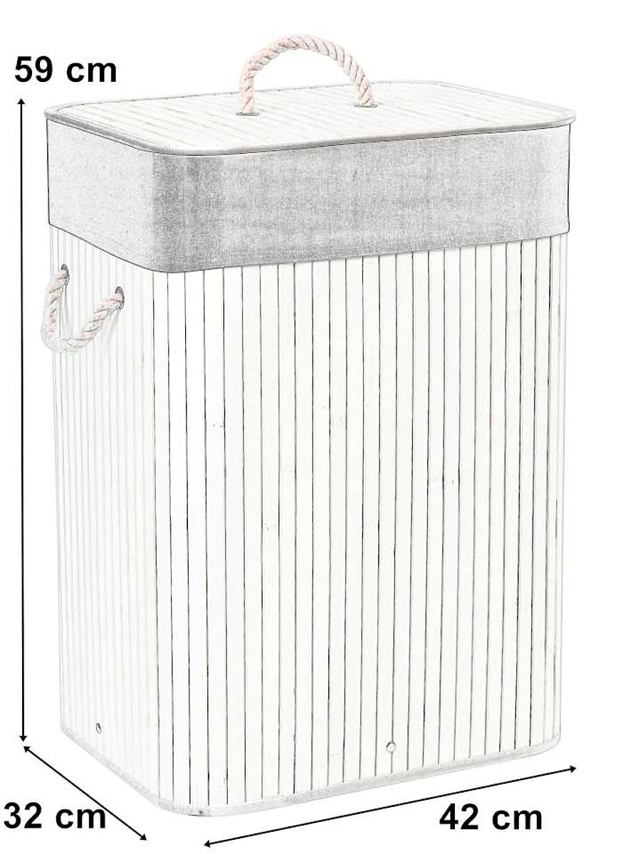 Bambusový kôš na bielizeň s vekom 80L bielo-sivý
