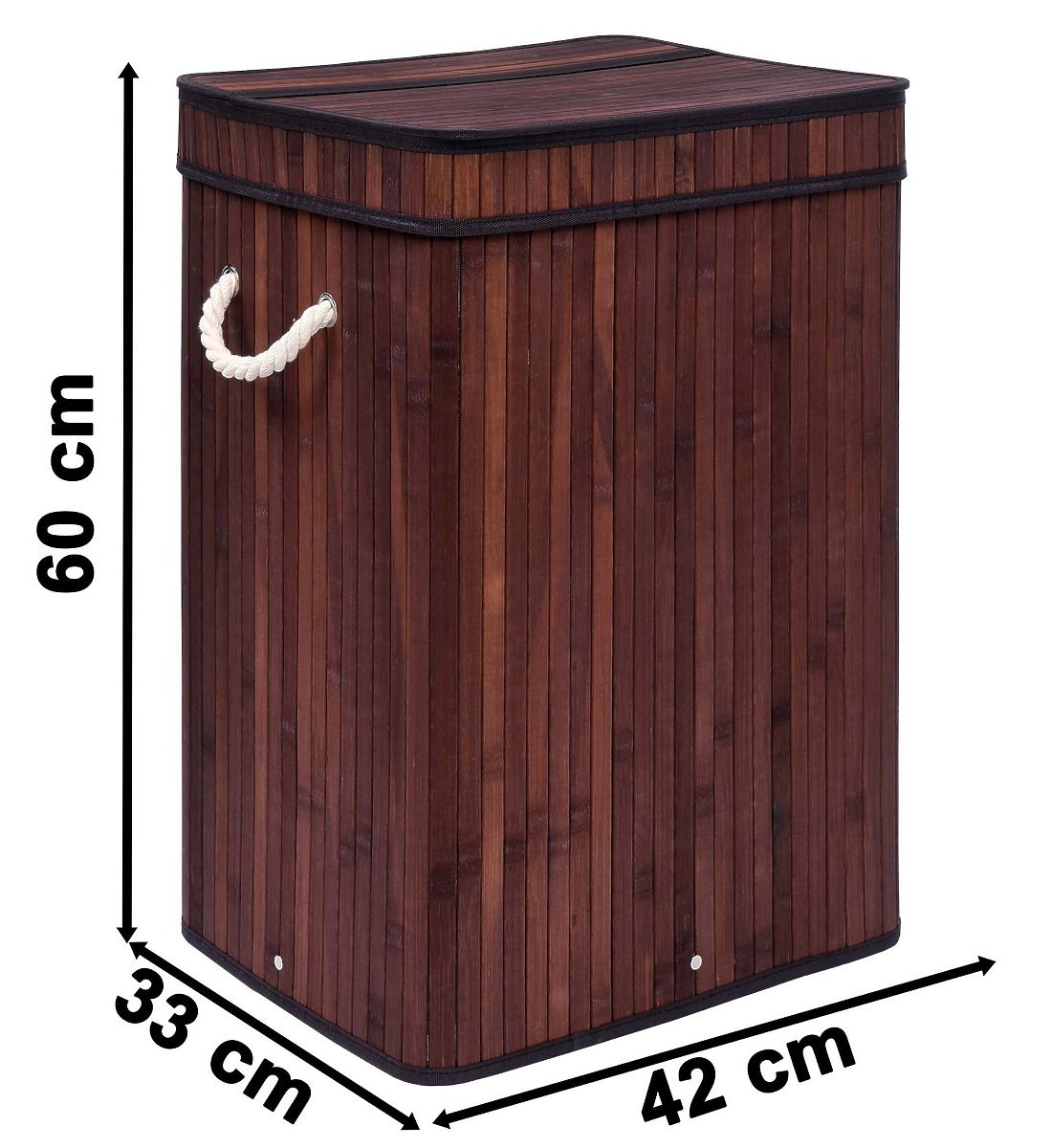 Vlastnosti produktu Z prírodného bambusu Určené do kúpeľne, práčovne alebo spálne Veľká kapacita Vnútro vystlané mäkkým materiálom Pohodlné veko s rúčkou z lana Dve rúčky z lana pre ľahké prenášanie Moderná farba