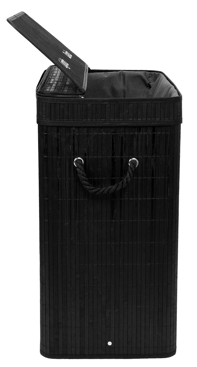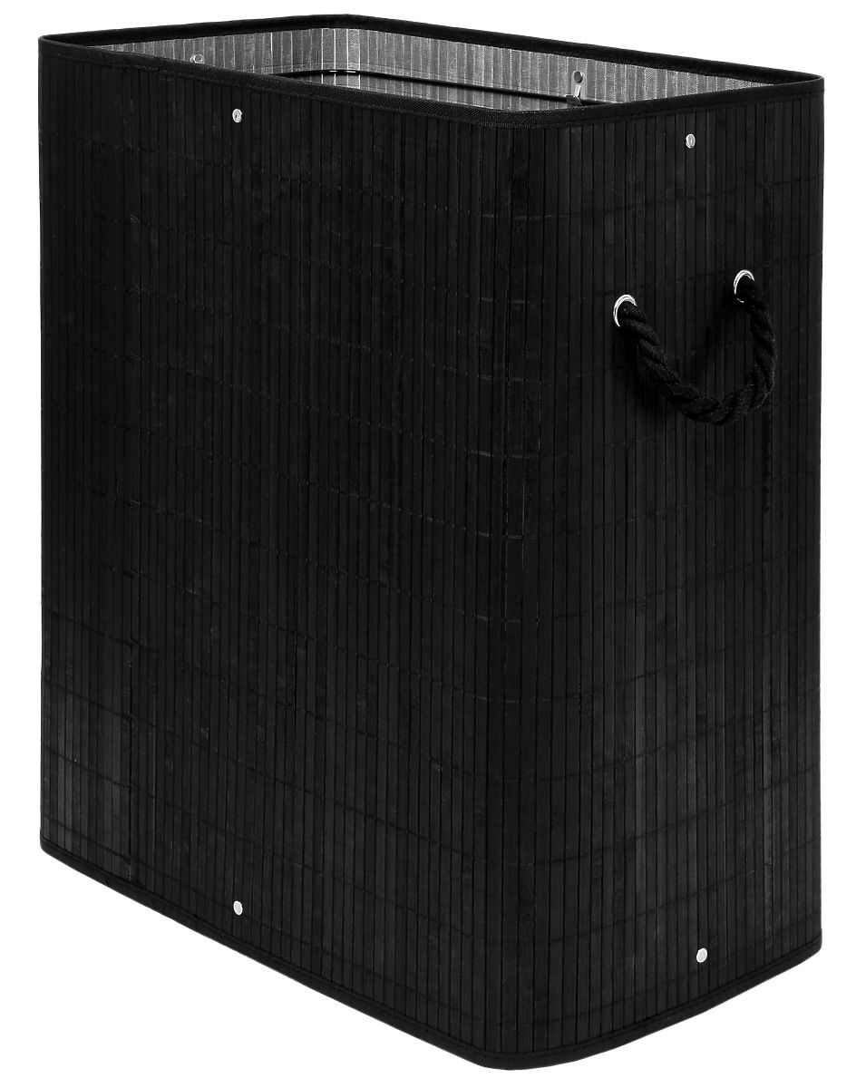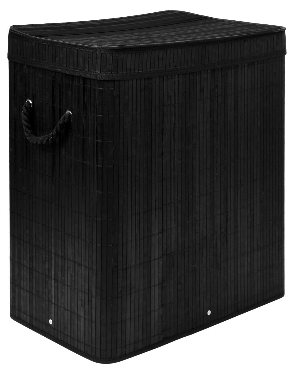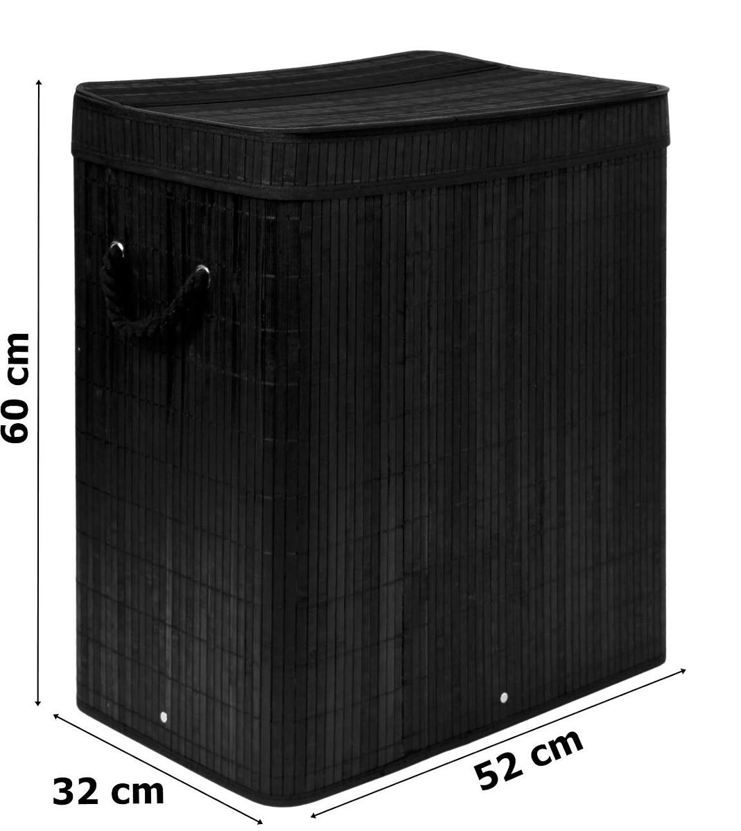 Bambusový kôš na prádlo s vekom 100L čierny Kapacita: 100 litrov | Farba: Čierna | 2 komory na svetlé a tmavé prádlo