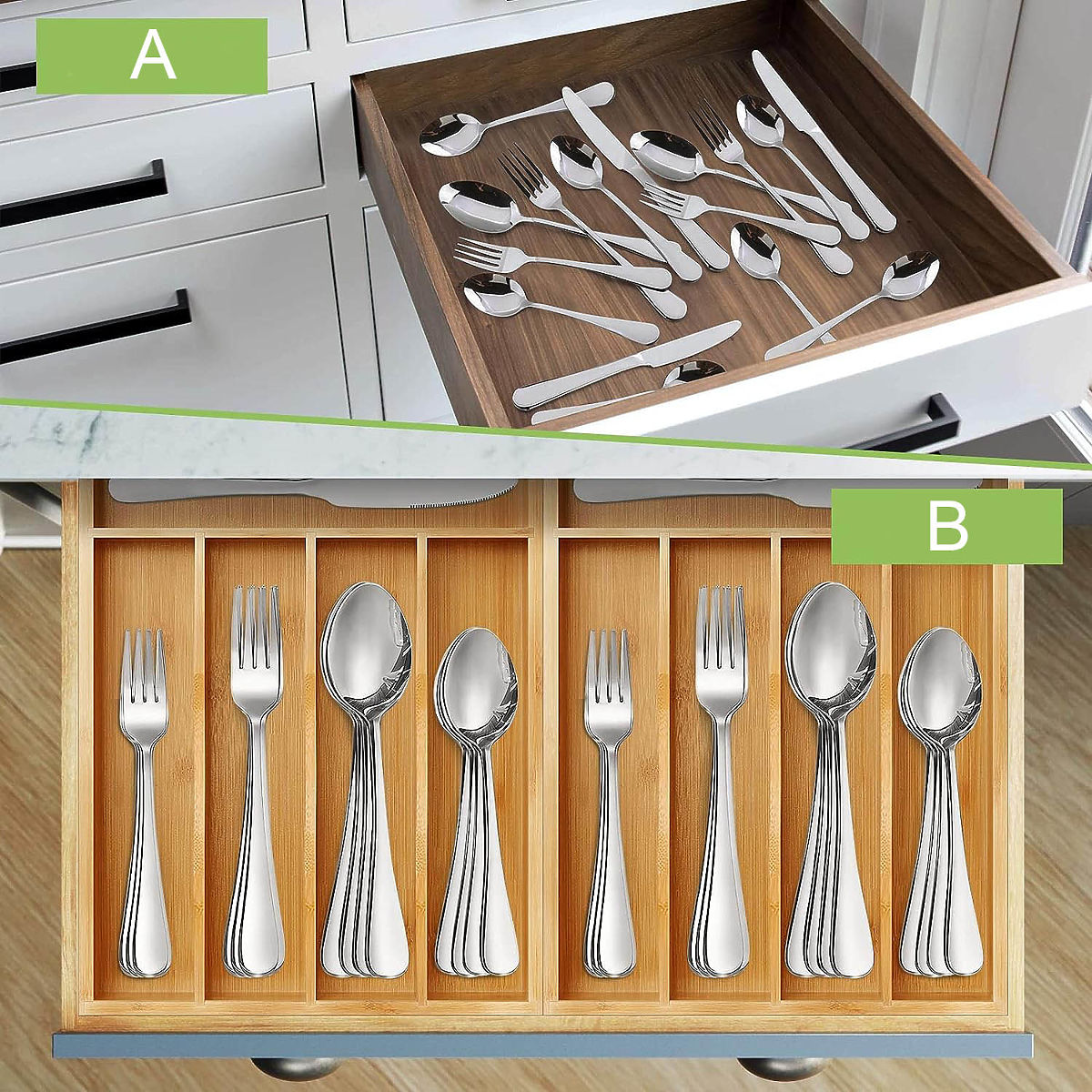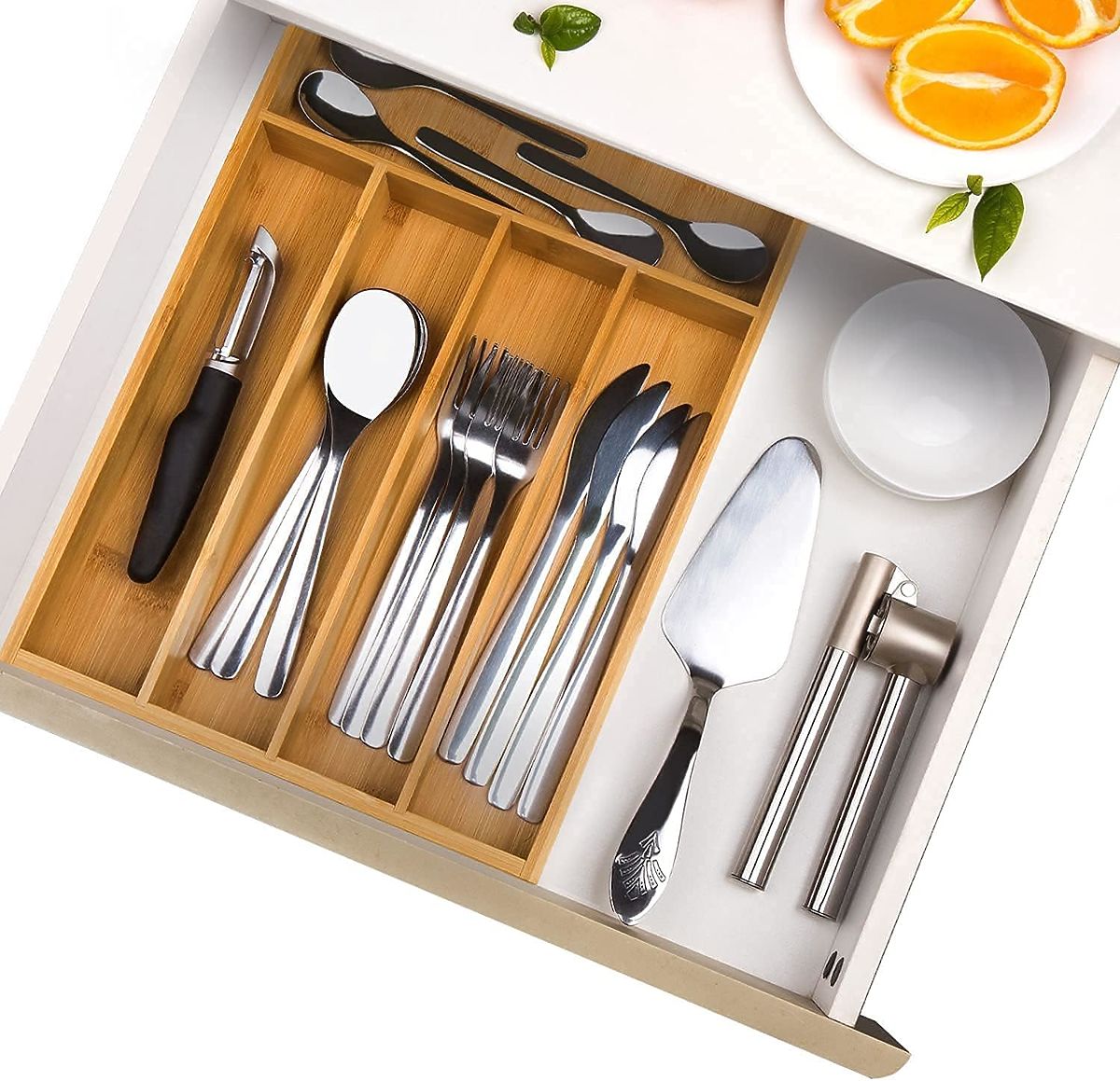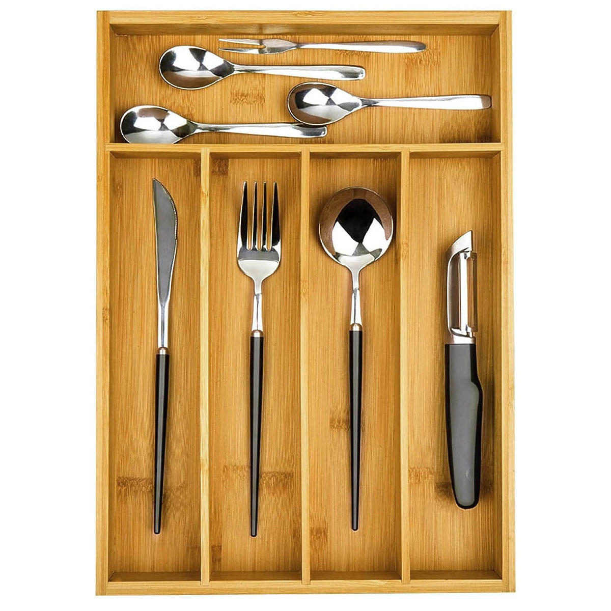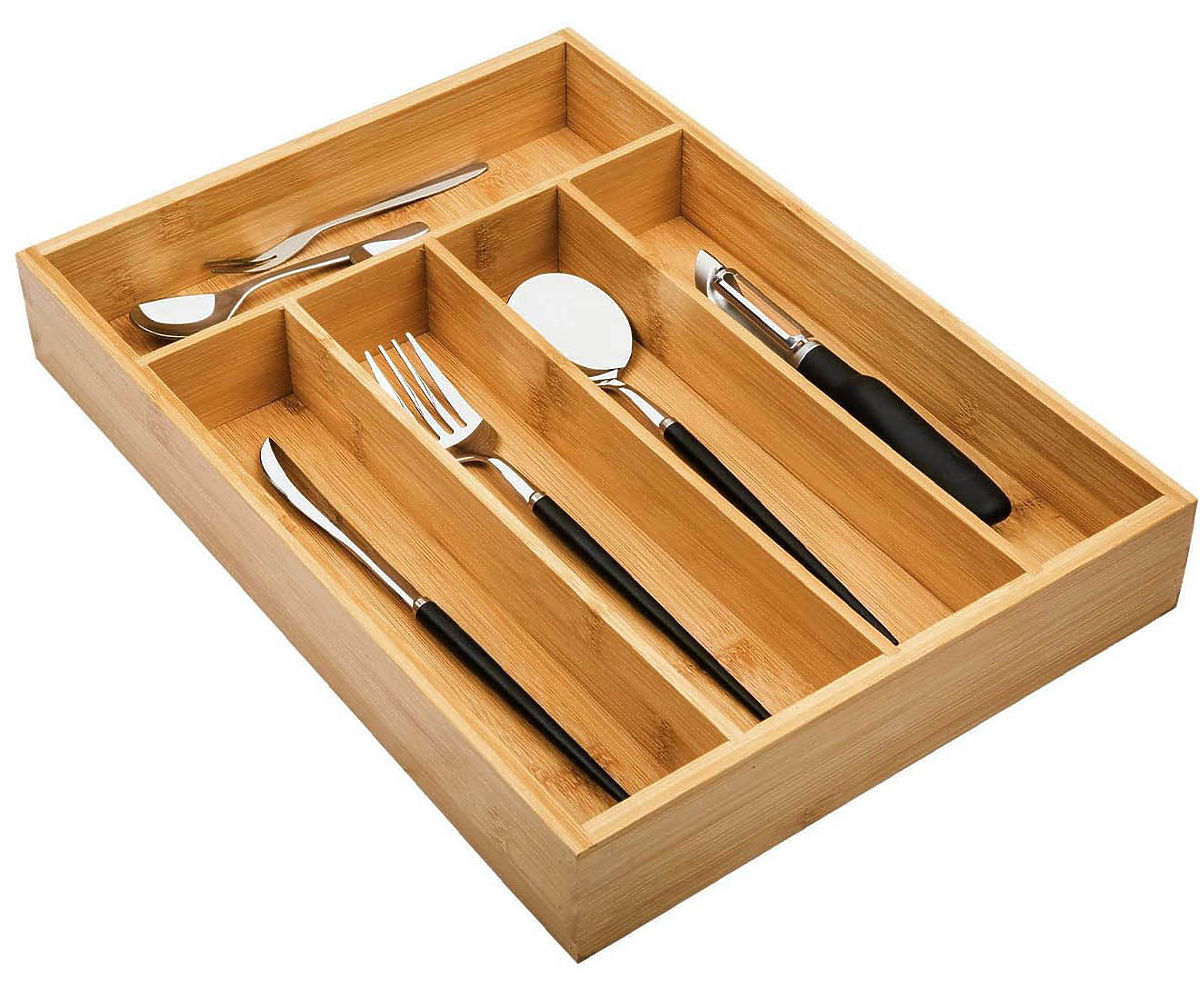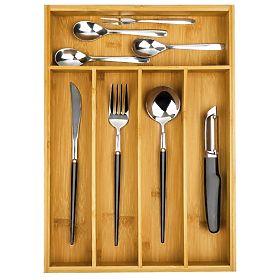 Rozmery: 25 x 35 cm zabezpečujú, že sa zmestí do väčšiny zásuviek, ponúkajúc 5 priehradiek na príbory a ďalšie predmety. Nie je to len miesto na príbory, ale aj všestranný organizér na ukladanie doplnkov či kozmetiky v kuchyni, kancelárii alebo kúpeľni.