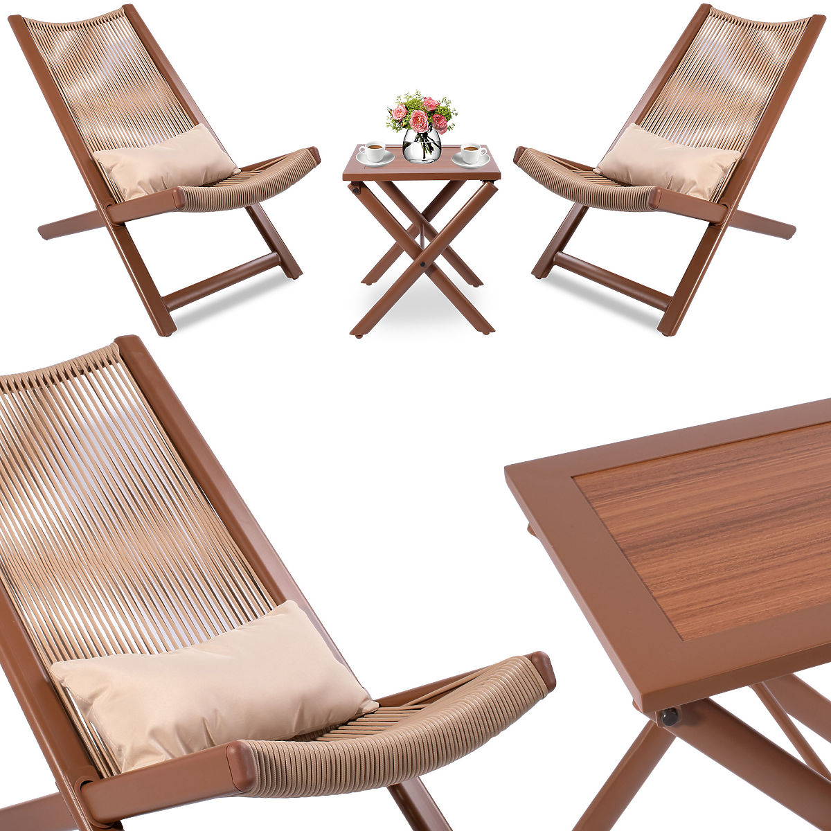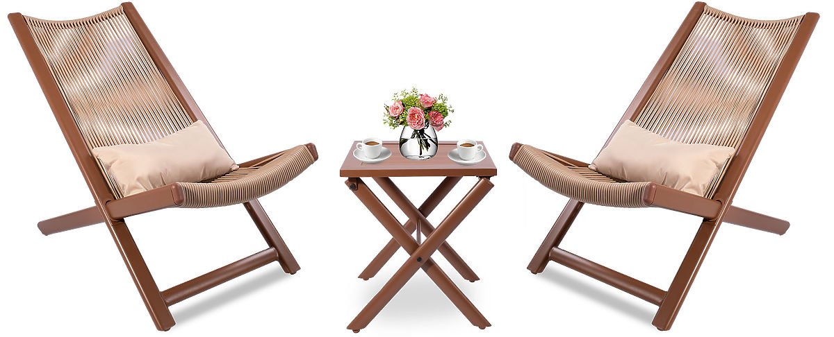 Súprava záhradného nábytku Chill je ideálnym riešením pre relaxáciu na čerstvom vzduchu. Vyrobené z odolného plastu a práškovo lakovanej ocele, zaručuje trvanlivosť a dlhú životnosť. Súprava obsahuje dve pohodlné kreslá s mäkkými vankúšmi a skladací stolík. Skvelý nábytok do záhrady, na terasu alebo balkón. Ďalšie vankúše zvyšujú komfort používania. Estetická a pevná voľba pre relaxáciu na čerstvom vzduchu.