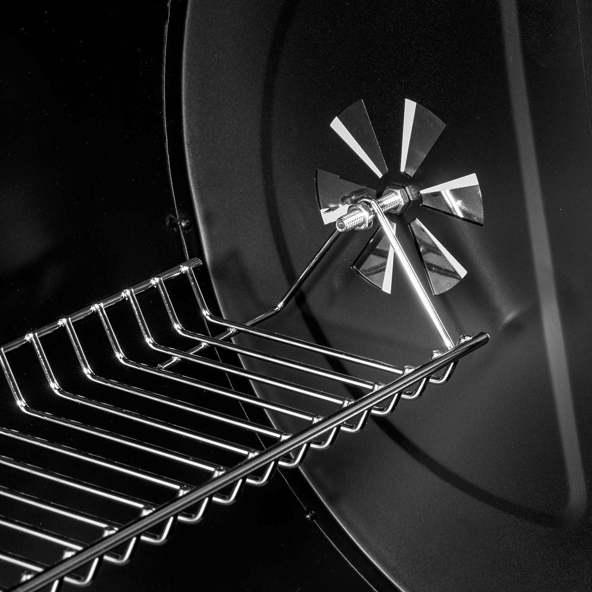Barel ponúka nielen veľký grilovací priestor, ale aj praktické riešenia uľahčujúce grilovanie. Dve kovové, skladacie police po stranách sú ideálnym miestom pre korenie, riad alebo iné potrebné príslušenstvo. Vďaka dvom vetracím otvorom, umiestneným na ľavej strane a na veku, máte plnú kontrolu nad prúdením vzduchu, čo umožňuje presné regulovanie teploty vo vnútri grilu.