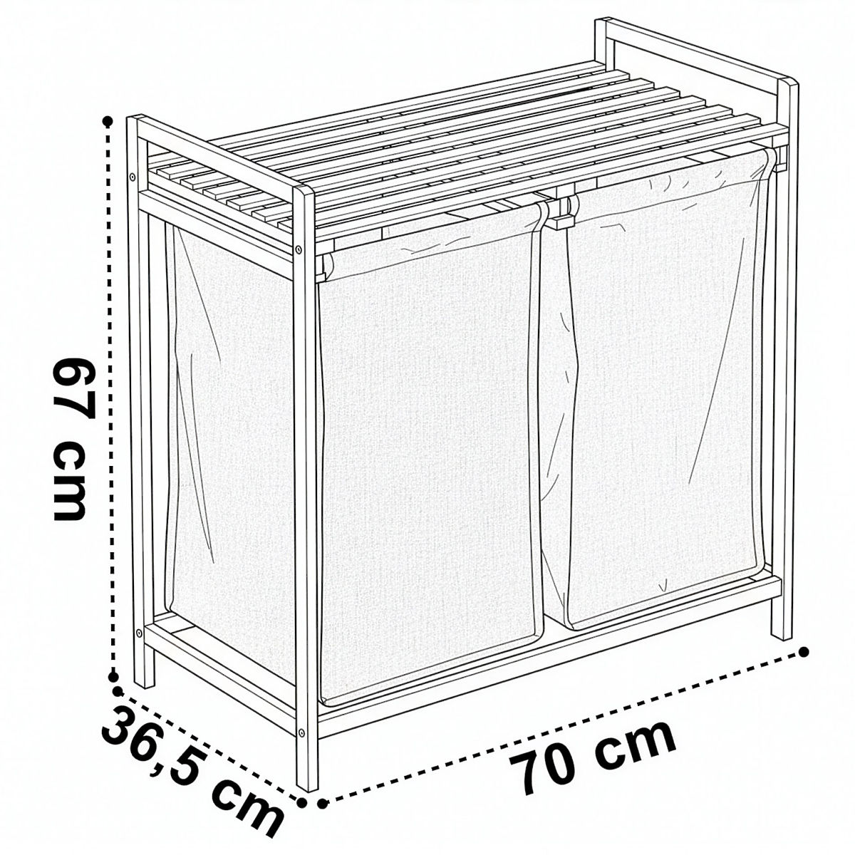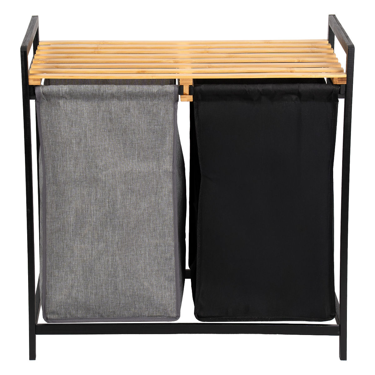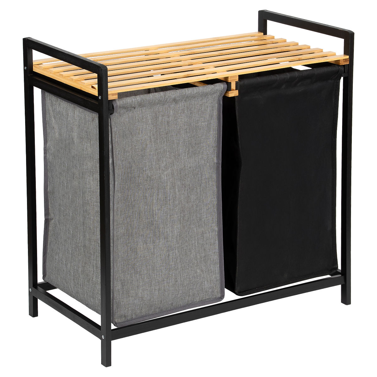 Bambusový kôš na bielizeň Hanoi Black Duo Farba je štýlové a funkčné riešenie pre modernú kúpeľňu. Kapacita 80 litrov a rozdelenie na dve komory uľahčujú triedenie bielizne. Praktická horná polica je vhodná na detergenty, doplnky alebo dekorácie. Látkové koše sa dajú ľahko vysúvať a jednoduchá montáž bez vŕtania umožňuje rýchlo pripraviť kôš na použitie. Ideálny pre loftové a moderné interiéry.