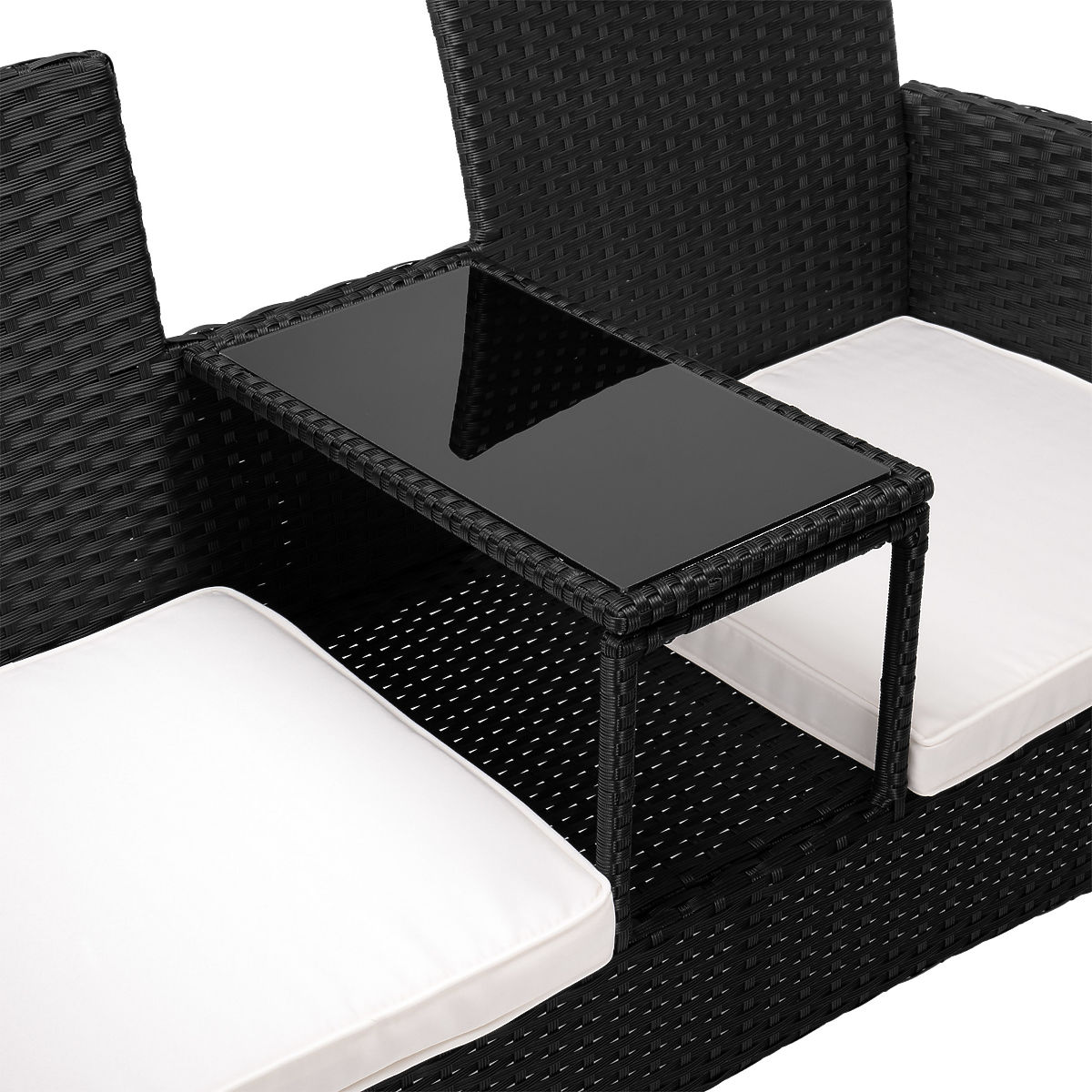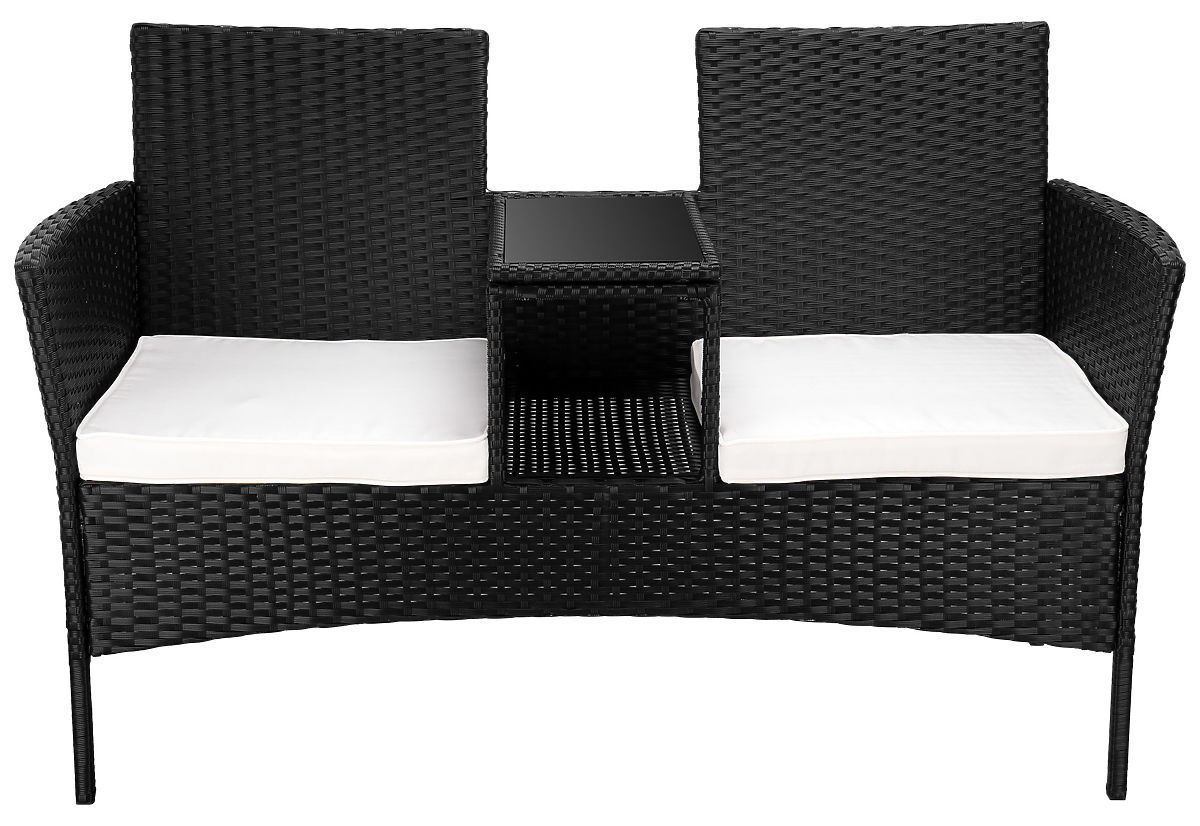 Lukahome.sk   »   Záhradný nábytok   /   Záhradné sety   /   Záhradná lavica z technoratanu pohovka CORDOBA čierna s béžovými vankúšmi