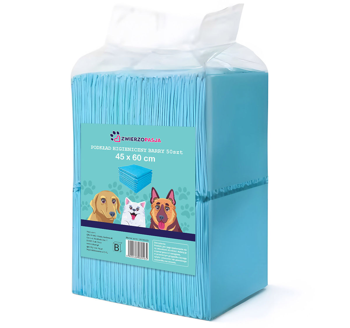 Hygienické podložky BARRY 45x60 50 ks. Použitie: Pre malé zvieratá | Veľkosť: 45 x 60 cm Hygienické podložky Barry sú praktickou a spoľahlivou podporou pre každého majiteľa psa. Uľahčujú udržiavanie čistoty v domácnosti, podporujú hygienické návyky u šteniat a účinne chránia podlahy a pelechy pred znečistením. Vďaka nim si vy aj váš miláčik môžete užívať väčšie pohodlie a pokoj každý deň.