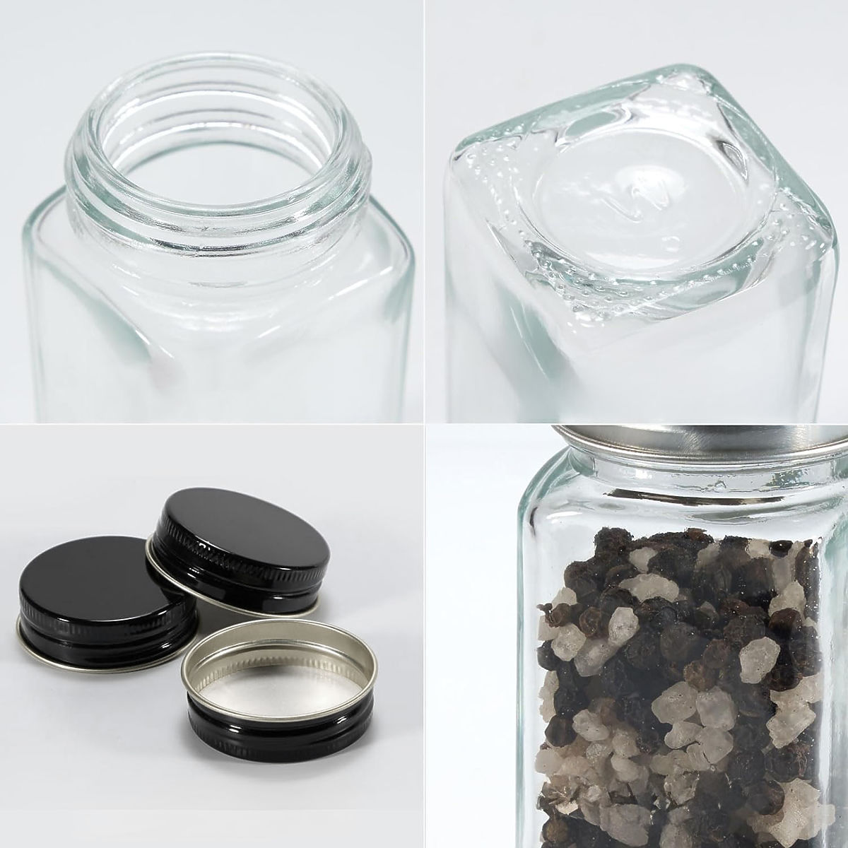 24 sklenených nádob na korenie s hliníkovým viečkom a plastovým sitkom