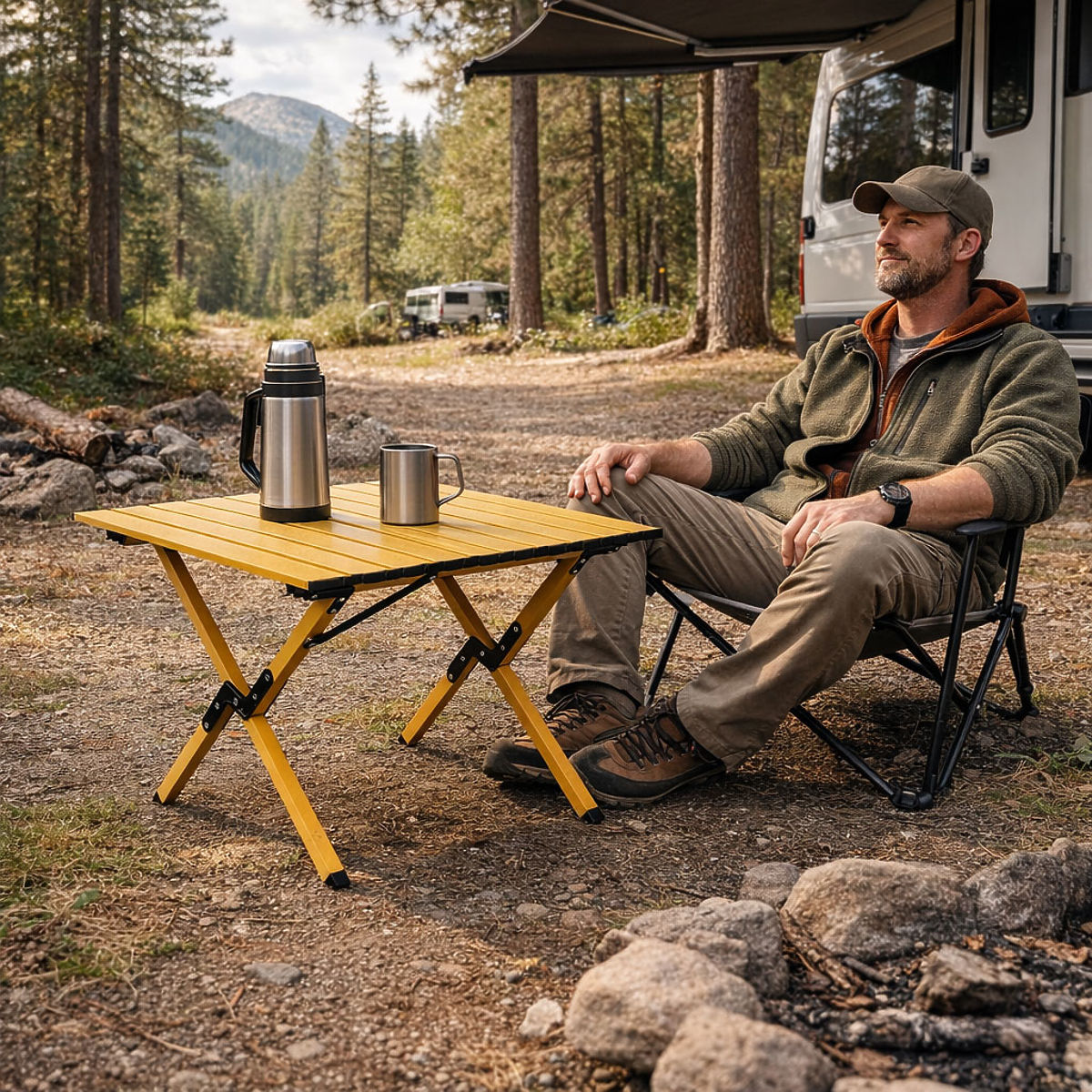 Turistický stôl MultiGarden je praktické riešenie vytvorené s ohľadom na odpočinok na čerstvom vzduchu. Skvele poslúži pri kempovaní, táborení, výletoch, piknikoch alebo grilovaní na záhrade, poskytujúc pohodlné miesto pre konzumáciu jedál, prípravu občerstvenia alebo umiestnenie nápojov a turistických doplnkov. Vďaka svojej mobilnej konštrukcii možno stôl ľahko vziať so sebou k jazeru, do záhrady, do lesa alebo na pláž. Je to tiež skvelý doplnok relaxačnej zóny na záhrade alebo terase, keď potrebujete ľahký a funkčný nábytok, ktorý rýchlo rozložíte kdekoľvek.