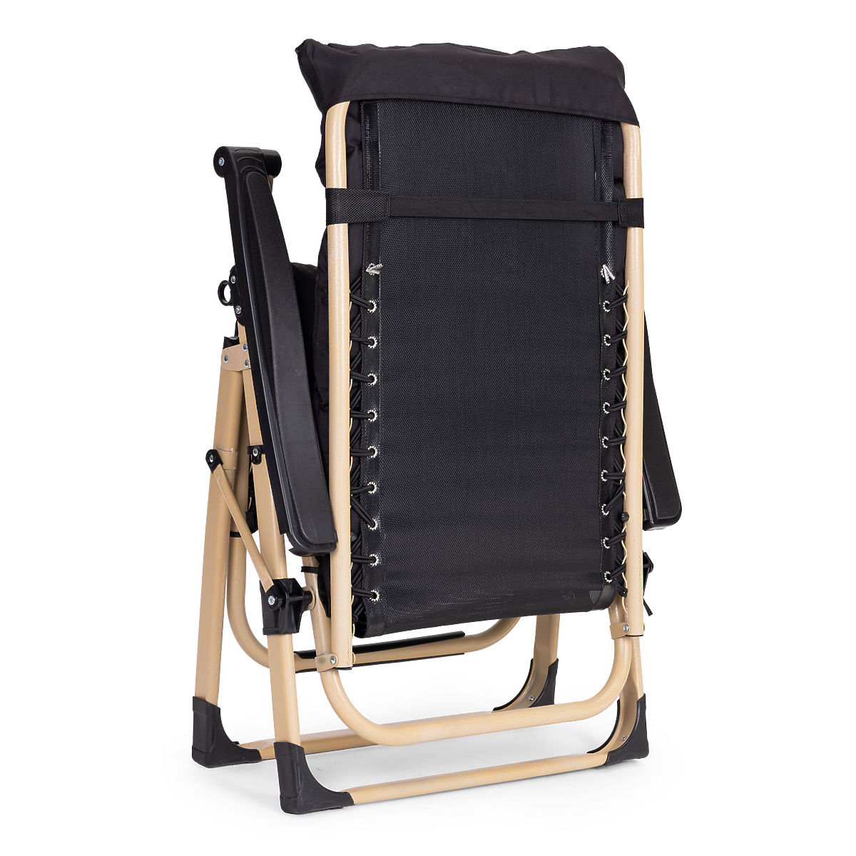 Lukahome.sk » Záhradný nábytok / Záhradné lehátka / Záhradné plážové lehátko s vankúšom a nastaviteľnou opierkou čierne zlatý rám MultiGarden