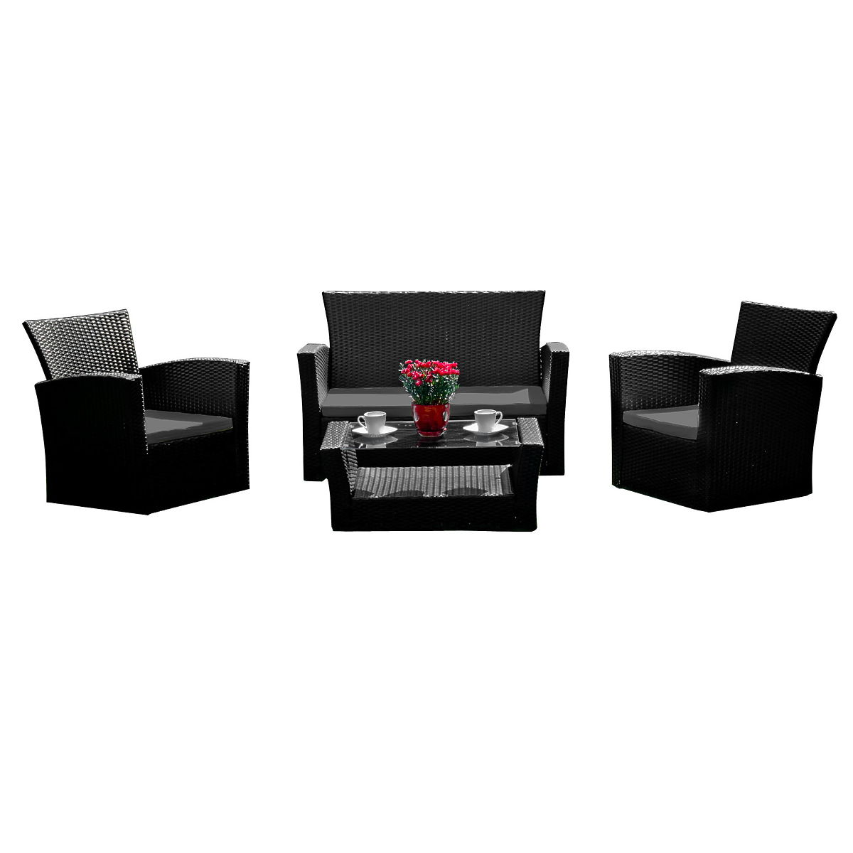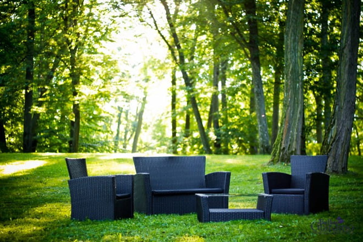 Lukahome.sk » Záhradný nábytok / Záhradné sety / Záhradný nábytok z technoratanu (sofa 123cm, 2 x kreslo + stolík) UNICO čierny