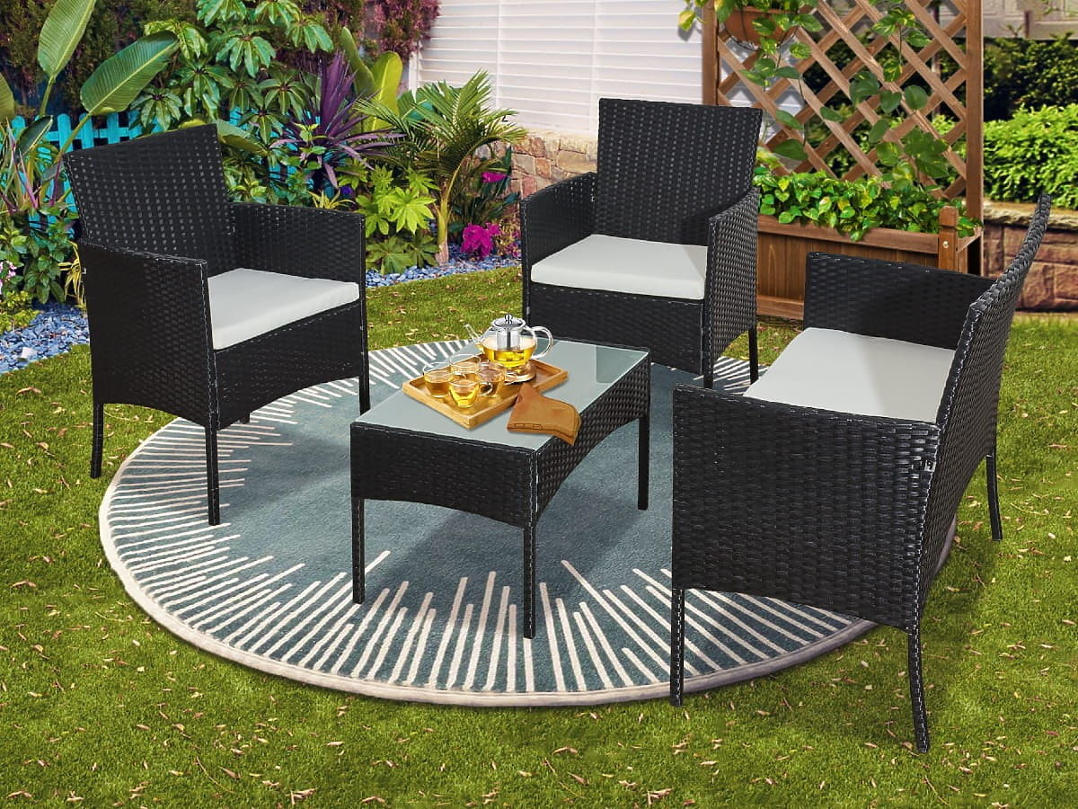 Balkónová sada z technoratanu (Pohovka + 2 x kreslo + stolík) COMODO čierna