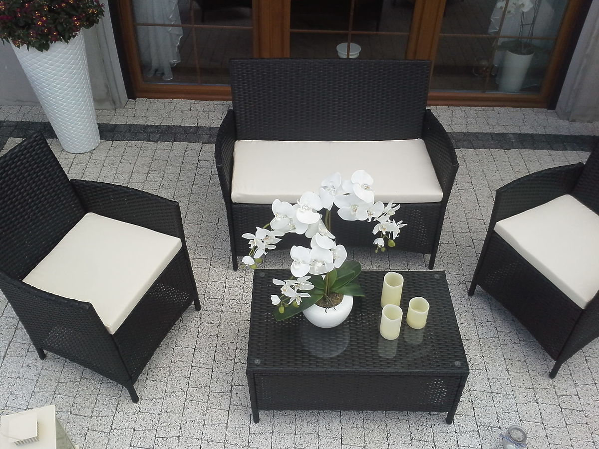 Sada ratanového nábytku COMODO je kvintesenciou jednoduchosti a elegancie, ktorá premení každé miesto na oddych na čerstvom vzduchu. Ich luxusný dizajn prináša jedinečnú atmosféru, ideálnu na relaxáciu a užívanie si voľného času. Vyrobené zo syntetického ratanu, tieto kusy nábytku sú mimoriadne odolné voči všetkým poveternostným podmienkam, vrátane dažďa a UV žiarenia, čo zaručuje ich trvanlivosť a krásny vzhľad po mnoho rokov. Nadčasová elegancia nábytku COMODO zabezpečuje, že sa dokonale hodí do akéhokoľvek prostredia a stáva sa jeho výnimočnou ozdobou. Navyše, COMODO je nábytok, ktorý očarí svojou ľahkosťou a jednoduchou údržbou. Mäkké vankúše a ergonomické tvary poskytujú bezkonkurenčný komfort užívania, zatiaľ čo starostlivé spracovanie a dôraz na detaily podčiarkujú ich vysokú kvalitu. Voľbou nábytku COMODO investujete do štýlu, pohodlia a trvanlivosti, ktoré vás budú tešiť po mnoho sezón. Farba sady COMODO: čierna – jednoliata Pletenina: technoratan 7-8mm x 1,2mm, jemne pruhovaná štruktúra Konštrukcia nábytku: oceľová (vyžaduje jednoduché zostavenie) Sada sa skladá zo 4 prvkov (po zostavení): 2 x kreslo: šírka: 58 cm hĺbka: 57,5 cm výška: 80 cm 1 x pohovka: šírka: 104 cm hĺbka: 57,5 cm výška: 80 cm 1 x stolík (s matnou sklenenou doskou z 5mm bezpečnostného skla): dĺžka: 71 cm šírka: 41 cm výška: 37 cm Vankúše sú zahrnuté v cene sady (3 ks na sedáky). Všetky majú snímateľné poťahy na zips, vyrobené z vodeodolného materiálu (100% polyester), ktoré možno prať pri nízkych teplotách. Hrúbka vankúšov na sedáky: 5 cm. Technoratan je odolný voči škodlivým vplyvom poveternostných podmienok, avšak pre ešte dlhšie zachovanie nezmeneného vzhľadu nábytku odporúčame používanie a skladovanie produktu pod strechou alebo zakúpenie ochranného krytu. Kryt v tmavo šedej farbe je jednodielny a má dole sťahovaciu šnúrku. Všetky kryty sú šité na zákazku a doba realizácie je cca 14 pracovných dní. Fotografie od našich zákazníkov: