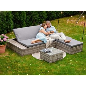 Sada záhradného nábytku DIABOLICO je kvintesenciou modernosti a funkčnosti, ponúkajúca dokonalú kombináciu vysoko kvalitného hliníka a technoratanu. Táto unikátna kombinácia materiálov nielenže zabezpečuje nábytku mimoriadnu odolnosť voči dažďu, mrazu a extrémnym teplotám, ale tiež im dodáva výnimočný štýl. Záhradný nábytok pozostávajúci z pufu, stolíka a postele, ktorá môže tiež slúžiť ako pohovka, je perfektným riešením pre každého, kto si cení estetiku aj praktickosť. Nastaviteľné operadlá umožňujú rýchlu a jednoduchú transformáciu pohovky na posteľ, čo zvyšuje všestrannosť sady. Sada odpočinkového nábytku DIABOLICO, so širokým pletením v odtieňoch šedej a elegantne dokončenými vankúšmi, nie je len nábytkom, ale aj umeleckým dielom, ktoré dodá triedu a jedinečný charakter každému vonkajšiemu priestoru. Farba sady DIABOLICO: šedý melír, nejednotný Pletenie: technoratan 15mm x 1,2mm, hladká štruktúra Konštrukcia nábytku: hliníková Sada zložená z 3 prvkov: 1 x posteľ/pohovka: dĺžka: 227 cm šírka: 114 cm výška: 30 cm posteľ pre 2 osoby: 3-stupňová regulácia operadla postele pohovka pre 3 osoby: 4-stupňová regulácia operadla pohovky Maximálna výška pri zdvihnutých 3 operadlách pohovky (od sedadla): 42 cm 1 x puf: dĺžka: 78 cm šírka: 58 cm výška: 30 cm 1 x stolík (so sklenenou, priehľadnou doskou z 5mm bezpečnostného skla): dĺžka: 54 cm šírka: 54 cm výška: 30 cm Výška sedadla pohovky/postele a pufu: 30 cm + 8 cm vankúš Posteľ je zasielaná v 1 kartóne o rozmeroch 230x32x117 cm, váha 35 kg Vankúše v šedej farbe v cene sady. Všetky majú snímateľné poťahy na zips, vyrobené z outdoorového materiálu (100% polyester), ktoré možno prať pri nízkych teplotách. Poťahy na vankúše sú ušité z vysoko kvalitnej tkaniny pokrytej teflónom, ktorý ich chráni pred vlhkosťou. Výplň vankúšov je vyrobená z vysoko kvalitnej čalúnickej peny (stredne tvrdé - T25), ktorá zabraňuje deformáciám. Hrúbka vankúšov: 8 cm Technoratan je odolný voči škodlivým vplyvom poveternostných podmienok, ale aby ste si mohli ešte dlhšie užívať nemenný vzhľad nábytku, odporúčame zakúpiť ochranný obal. Obal v tmavo šedej farbe je jednokusový a má dole sťahovaciu šnúrku, prepletenú kovovými očkami. Všetky obaly sú šité na zákazku a doba realizácie je cca 21 pracovných dní. Predstavte si záhradný nábytok, ktorý prekračuje vaše očakávania vo všetkých ohľadoch – od odolnosti po dizajn. To je BELLO GIARDINO, kde každý detail má význam a luxus sa stretáva s funkčnosťou: Nezničiteľná kvalita: Náš syntetický ratan je zárukou, že nábytok vydrží roky, bez toho aby stratil na kráse či trvanlivosti. Odolnosť voči počasiu: Náš nábytok čelí najťažším poveternostným podmienkam, od žeravého slnka po mrazivé zimy, zostávajúci stále krásny. Luxusný komfort: Silné, mäkké vankúše pozývajú k relaxácii, ponúkajúci komfort, ktorý je ťažké nájsť inde. Ľahkosť a pevnosť: Hliníková konštrukcia spája to najlepšie z oboch svetov – je ľahká, ale mimoriadne stabilná. Dizajn, ktorý očarí: Každý prvok nášho nábytku bol navrhnutý s ohľadom na estetiku a funkčnosť, aby sa hodil do každého prostredia. Či už ste milovníkom minimalizmu, alebo si ceníte bohaté, elegantné aranžmány, náš nábytok splní vaše očakávania, prekračujúce hranice bežnej funkčnosti a estetiky. Zaisťujeme, že aj tí najodolnejší zákazníci neodolajú pohodliu a štýlu, ktorý ponúka BELLO GIARDINO. Urobte z vašej záhrady, terasy či balkóna oázu relaxácie a elegancie, ktorú ste vždy chceli mať. Nečakajte, objavte BELLO GIARDINO ešte dnes a premeňte svoje vonkajšie priestory na miesta, o ktorých ste vždy snívali. Fotografie od zákazníkov