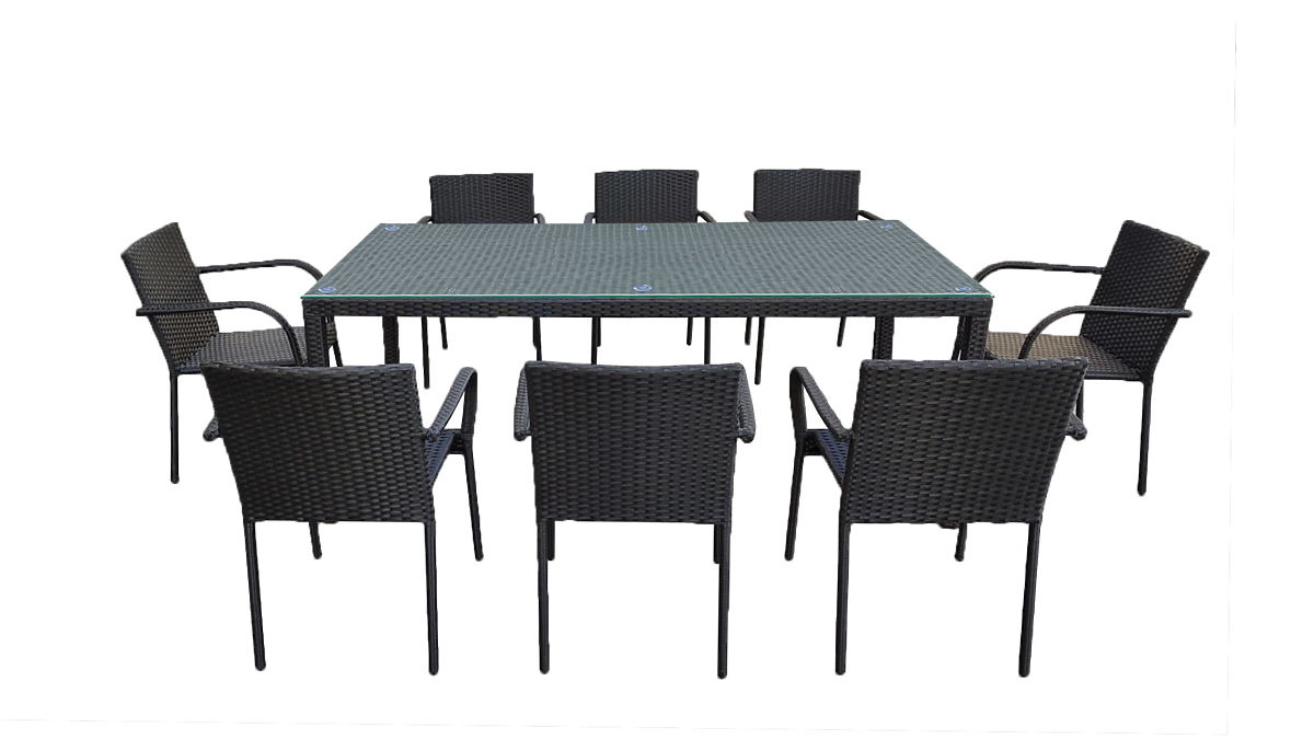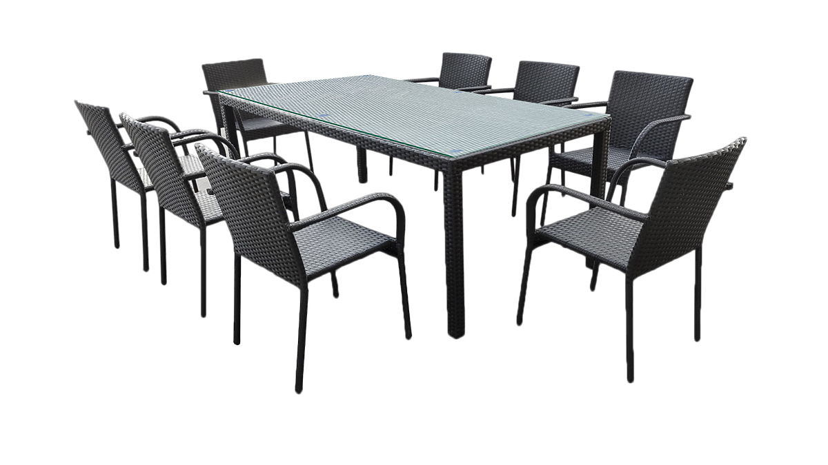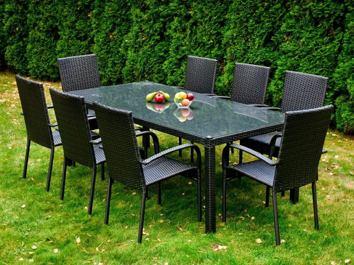 Veľká jedálenská súprava z technoratanu (stôl 200x100cm + 8 stoličiek) SOTTILE čierna