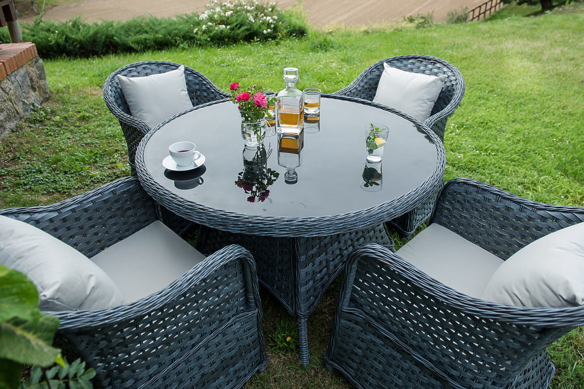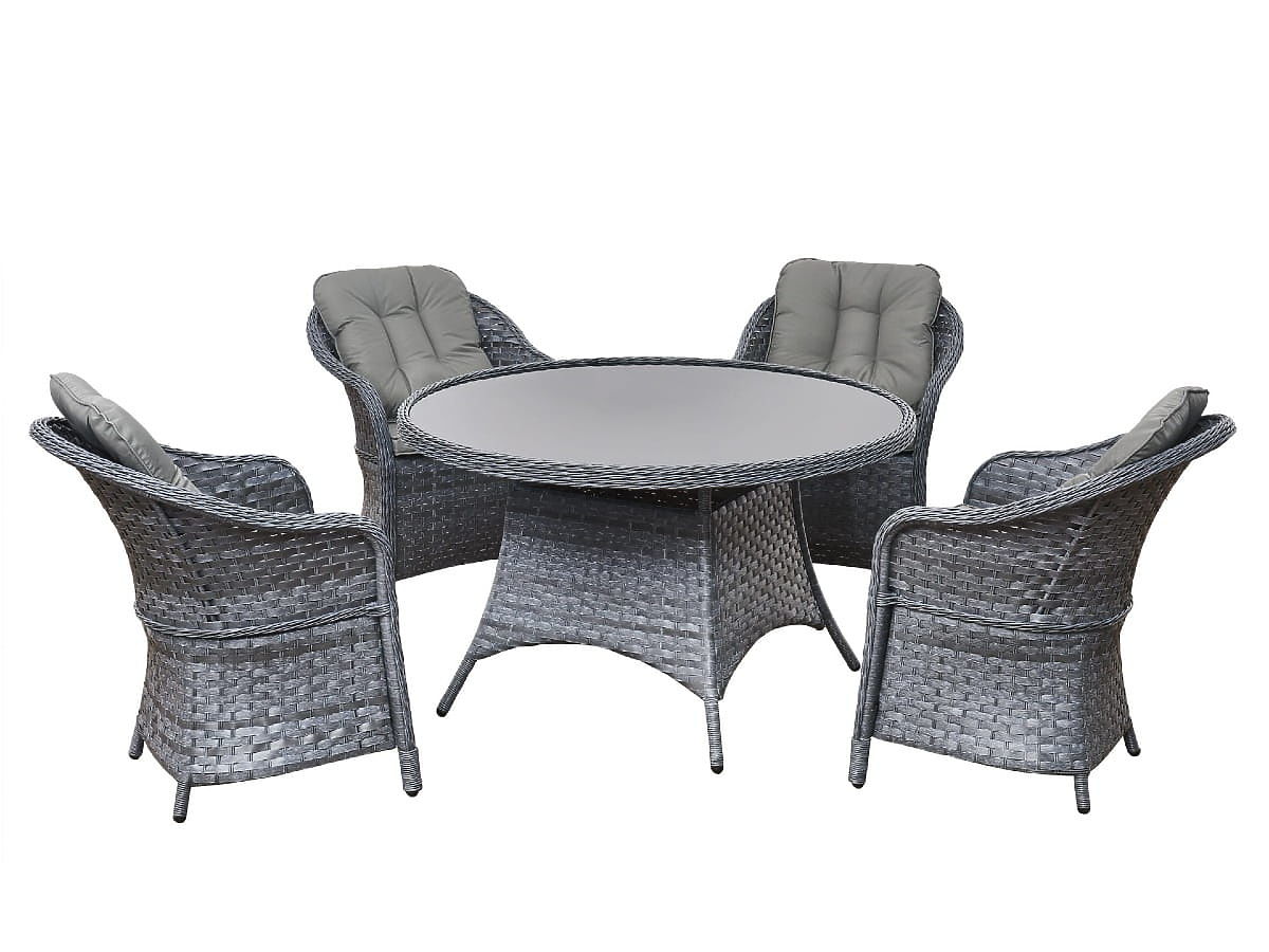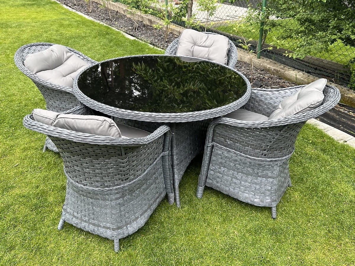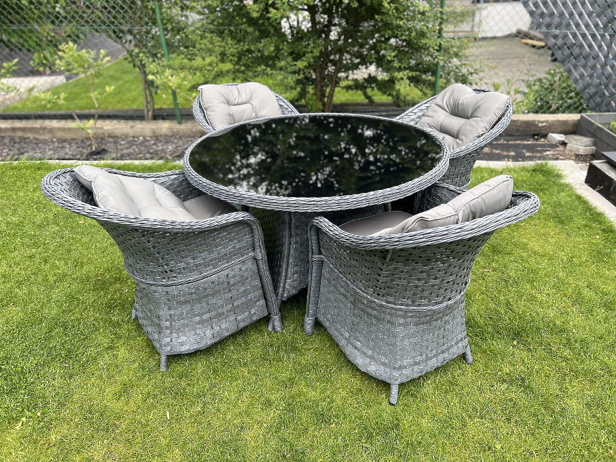 Jedálenská súprava z technoratanu (okrúhly stôl + 4 kreslá) MODERNO sivá