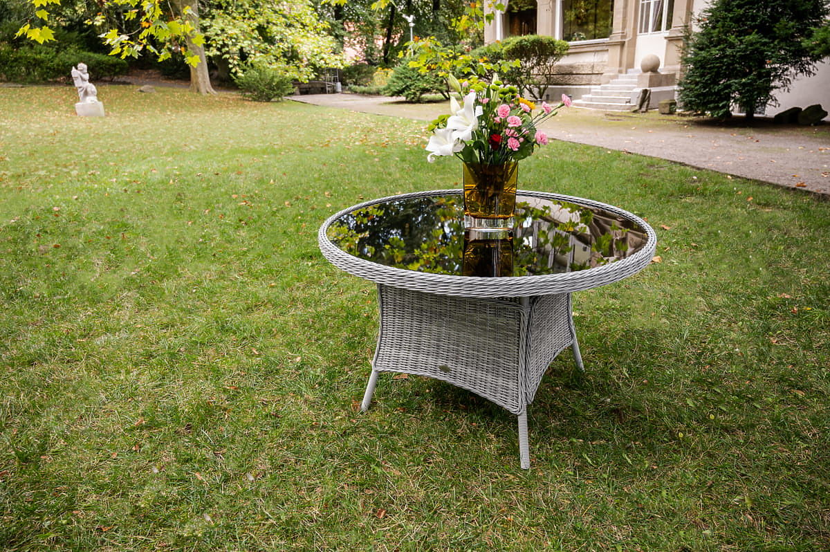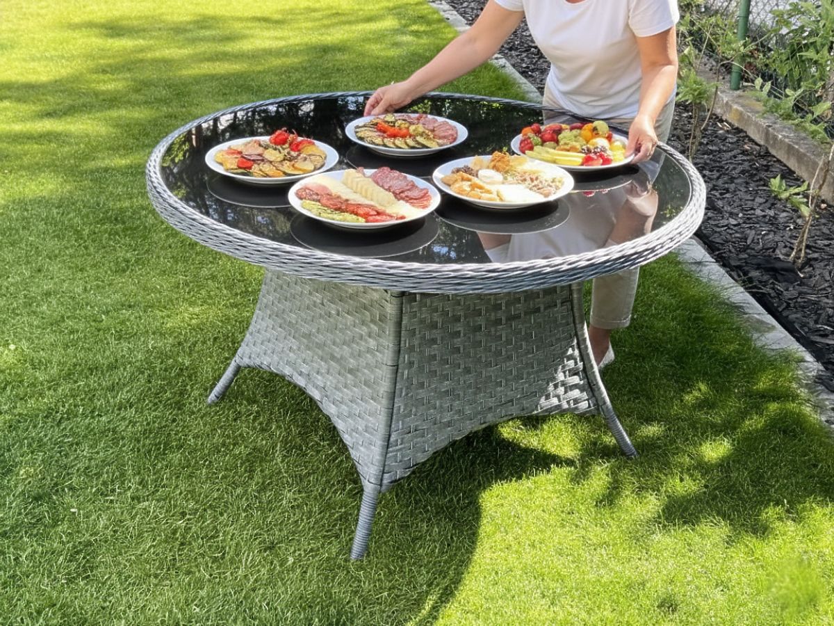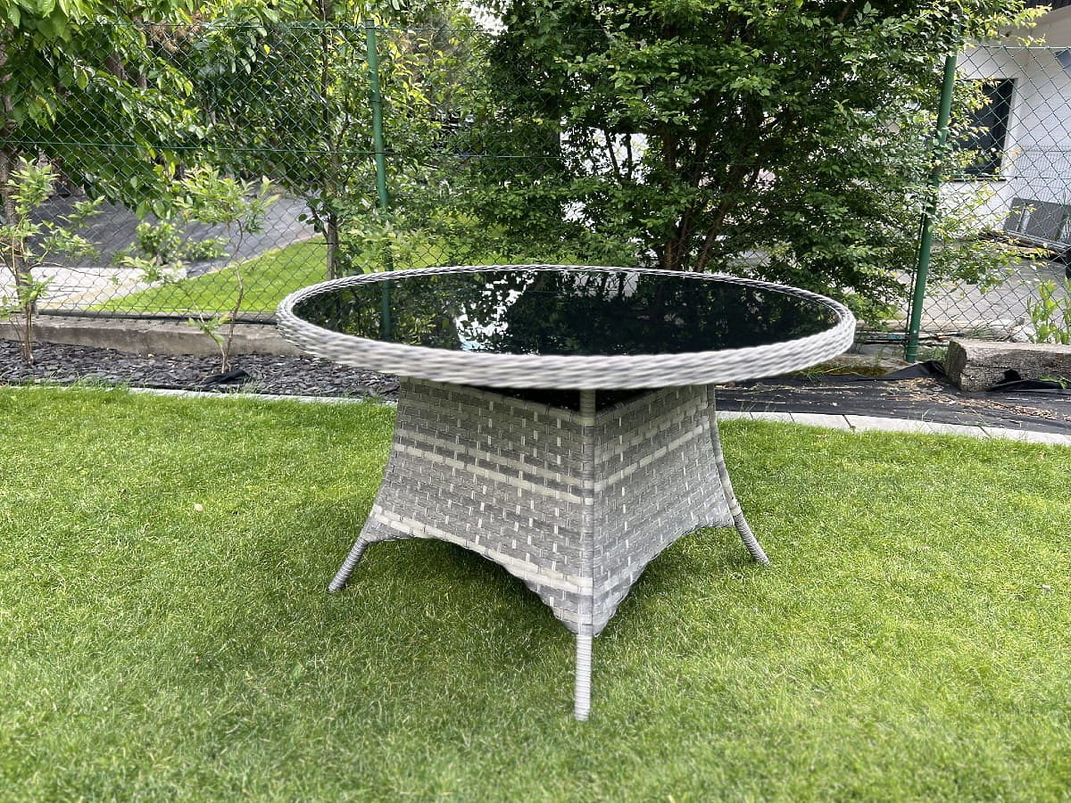 Veľký okrúhly stôl z technoratanu MODERNO svetlosivý