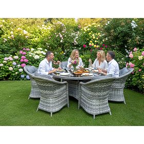 Veľká jedálenská súprava z technoratanu (6 kresiel + stôl) MODERNO svetlosivá