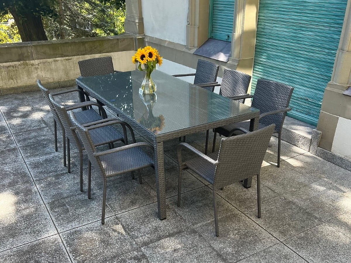 Jedálenská súprava SOTTILE bola navrhnutá pre milovníkov elegantných stretnutí v kruhu najbližších a predstavuje ideálne spojenie štýlu a pohodlia. Jeho mimoriadne elegantný nábytok bude nielen skvelou ozdobou každej záhrady či terasy, ale tiež poskytne výnimočné podmienky pre trávenie času na čerstvom vzduchu. Záhradný nábytok z technoratanu bol vyrobený s vynikajúcou precíznosťou, čo podčiarkuje jeho luxusný charakter, a použitie vysoko kvalitného technoratanu zaručuje nielen odolnosť proti dažďu a škodlivému UV žiareniu, ale aj trvanlivosť a jednoduchú údržbu. Terasová súprava SOTTILE s praktickým materiálom a premysleným dizajnom je nielen praktickým, ale aj estetickým riešením, ktoré očarí každého, kto si cení spojenie modernosti s tradičnou eleganciou v usporiadaní vonkajších priestorov. Farba súpravy SOTTILE: sivá, kartáčovaná štruktúra Pletenina: technoratan 7-8mm x 1,2mm Konštrukcia nábytku: stôl – hliník, stoličky – oceľ Súprava sa skladá z 9 prvkov: 1 x stôl: dĺžka: 200 cm šírka: 100 cm výška: 74 cm sklenená, priehľadná doska vyrobená z 5 mm bezpečnostného skla, položená na technoratanovej pletenine 8 x stolička: šírka: 56 cm hĺbka: 50 cm výška: 84 cm výška od podlahy k sedáku: 44 cm výška operadla od sedáku: 43 cm šírka sedáku: 40 cm hĺbka sedáku: 43 cm Súprava je zasielaná na 1 palete o rozmeroch 120x80x210 cm, hmotnosť 80 kg Stoličky je možné po vybratí z krabíc ihneď používať. Stoličky sú stohovateľné (možnosť vkladania jednej do druhej), čo uľahčuje skladovanie a nábytok nezaberá veľa miesta. Stôl je určený na jednoduchú, samostatnú montáž podľa priloženého návodu. Sklenená doska stola je upevnená na silikónových prísavkách, ktoré ju chránia pred posúvaním. Možnosť zakúpenia vankúšov na stoličky tu. Technoratan je odolný voči škodlivým vplyvom počasia, avšak pre dlhšie zachovanie nemenného vzhľadu nábytku odporúčame zakúpiť ochranný kryt. Kryt v tmavosivej farbe je jednodielny a má dole sťahovaciu šnúrku. Všetky kryty sú šité na zákazku a doba realizácie je cca 14 pracovných dní. Predstavte si záhradný nábytok, ktorý prekonáva vaše očakávania vo všetkých ohľadoch – od odolnosti po dizajn. To je BELLO GIARDINO, kde každý detail má význam a luxus sa stretáva s funkčnosťou: Nepominuteľná kvalita: Náš syntetický ratan je zárukou, že nábytok vydrží roky, bez toho aby stratil na kráse či trvanlivosti. Odolnosť voči počasiu: Náš nábytok čelí najťažším poveternostným podmienkam, od spaľujúceho slnka po mrazivé zimy, zostávajúc stále krásny. Luxusný komfort: Silné, mäkké vankúše pozývajú k relaxácii, ponúkajúce komfort, ktorý je ťažké nájsť inde. Ľahkosť a pevnosť: Hliníková konštrukcia spája to najlepšie z oboch svetov – je ľahká, ale mimoriadne stabilná. Dizajn, ktorý očarí: Každý prvok nášho nábytku bol navrhnutý s ohľadom na estetiku a funkčnosť, aby sa hodil do každého prostredia. Či už ste milovníkom minimalizmu, alebo si ceníte bohatých, elegantných aranžmánov, náš nábytok splní vaše očakávania, prekračujúc hranice bežnej funkčnosti a estetiky. Zaisťujeme, že aj tí najnáročnejší zákazníci neodolajú pohodliu a štýlu, ktorý ponúka BELLO GIARDINO. Urobte z vašej záhrady, terasy či balkóna oázu relaxácie a elegancie, ktorú ste vždy chceli mať. Nečakajte, objavte BELLO GIARDINO už dnes a premeňte svoje vonkajšie priestory na miesta, o akých ste vždy snívali. Fotografie nábytku od našich zákazníkov:
