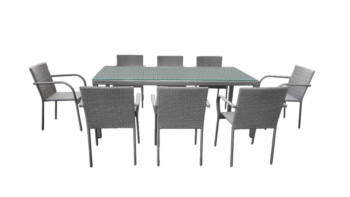 Veľká jedálenská súprava z technoratanu (8 stoličiek + veľký stôl) SOTTILE sivá