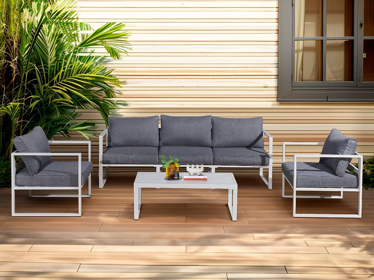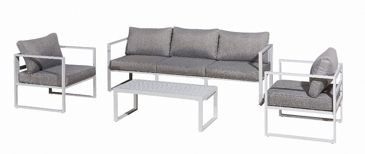Súprava záhradného nábytku (veľká 3-miestna pohovka, 2 x kreslo + stolík) MOSTRARE biely hliník, siv