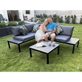 Objavte pohodlie a štýl s touto záhradnou rohovou súpravou! Jej pevná oceľová konštrukcia zaručuje roky používania a čierne, drevené akcenty nielen dodávajú kúzlo, ale aj chránia pred rozmarami počasia. Navrhnutá s ohľadom na váš odpočinok, je vybavená nadýchanými vankúšmi z vysoko kvalitnej peny, ktoré poskytujú bezkonkurenčné pohodlie. Táto sada nábytku je investíciou do krásnej a funkčnej záhrady, ktorá vám poslúži mnoho sezón. Farba sady VENTO: čierna Farba vankúšov: sivá Konštrukcia nábytku: oceľová Rohová súprava je modulárna, čo umožňuje jej usporiadanie v ľubovoľnej konfigurácii (vľavo/vpravo). Sada sa skladá z 3 prvkov: 2 x bočný modul (pravý a ľavý): šírka: 160 cm hĺbka: 67 cm výška: 69 cm 1 x stolík: dĺžka: 67 cm šírka: 67 cm výška: 34 cm Vankúše v sivej farbe na sedáky a opierky v cene sady (2 ks na sedáky, 5 ks na opierky). Hrúbka vankúšov na sedák: 8 cm. Predstavte si záhradný nábytok, ktorý prekonáva vaše očakávania v každom ohľade – od odolnosti po dizajn. Tu je BELLO GIARDINO, kde každý detail má význam a luxus sa stretáva s funkčnosťou: Neprchajúca kvalita: Náš syntetický ratan je zárukou, že nábytok vydrží roky, bez straty krásy či odolnosti. Odolnosť voči počasiu: Náš nábytok čelí najťažším poveternostným podmienkam, od spaľujúceho slnka po mrazivé zimy, zostávajúc stále krásny. Luxusné pohodlie: Silné, mäkké vankúše pozývajú k relaxácii, ponúkajú pohodlie, ktoré je ťažké nájsť inde. Ľahkosť a odolnosť: Hliníková konštrukcia spája to najlepšie z oboch svetov – je ľahká, ale mimoriadne stabilná. Dizajn, ktorý očarí: Každý prvok nášho nábytku bol navrhnutý s ohľadom na estetiku a funkčnosť, aby sa hodil do každého prostredia. Či už ste milovníkom minimalizmu, alebo si ceníte bohaté, elegantné aranžmány, náš nábytok splní vaše očakávania, prekračujúce hranice bežnej funkčnosti a estetiky. Zaručujeme, že aj tí najodolnejší zákazníci neodolajú pohodliu a štýlu, ktorý ponúka BELLO GIARDINO. Urobte z vašej záhrady, terasy či balkóna oázu relaxácie a elegancie, ktorú ste vždy chceli mať. Nečakajte, objavte BELLO GIARDINO ešte dnes a premeňte svoje vonkajšie priestory na miesta, o akých ste vždy snívali.