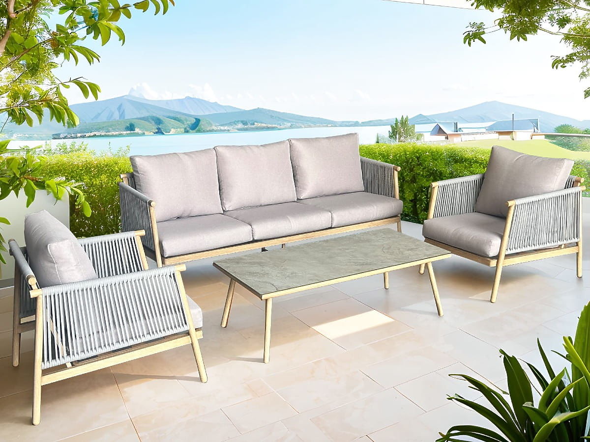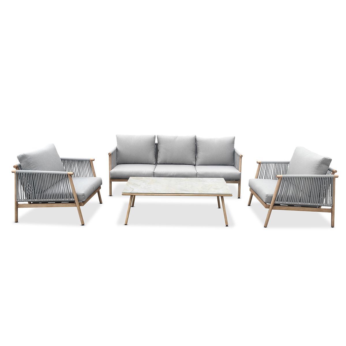 Hliníková sada terasového nábytku (Veľká pohovka, 2 x kreslo a stolík) BLANDO svetlosivá, hliník