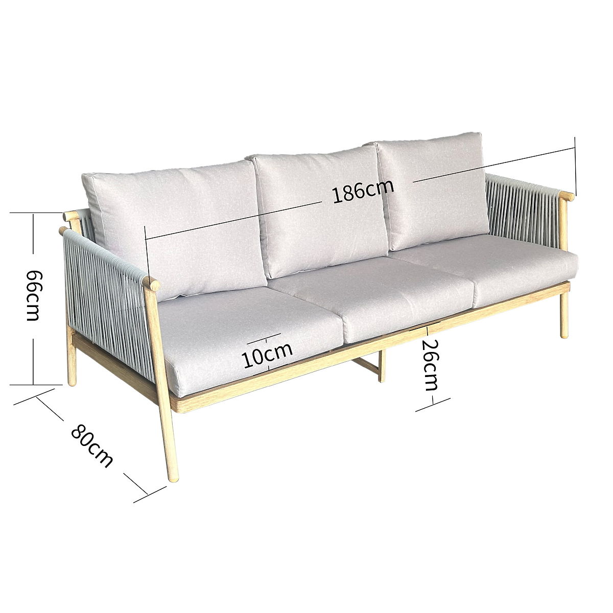 Hliníková záhradná pohovka BLANDO - veľká 3miestna, 186 cm