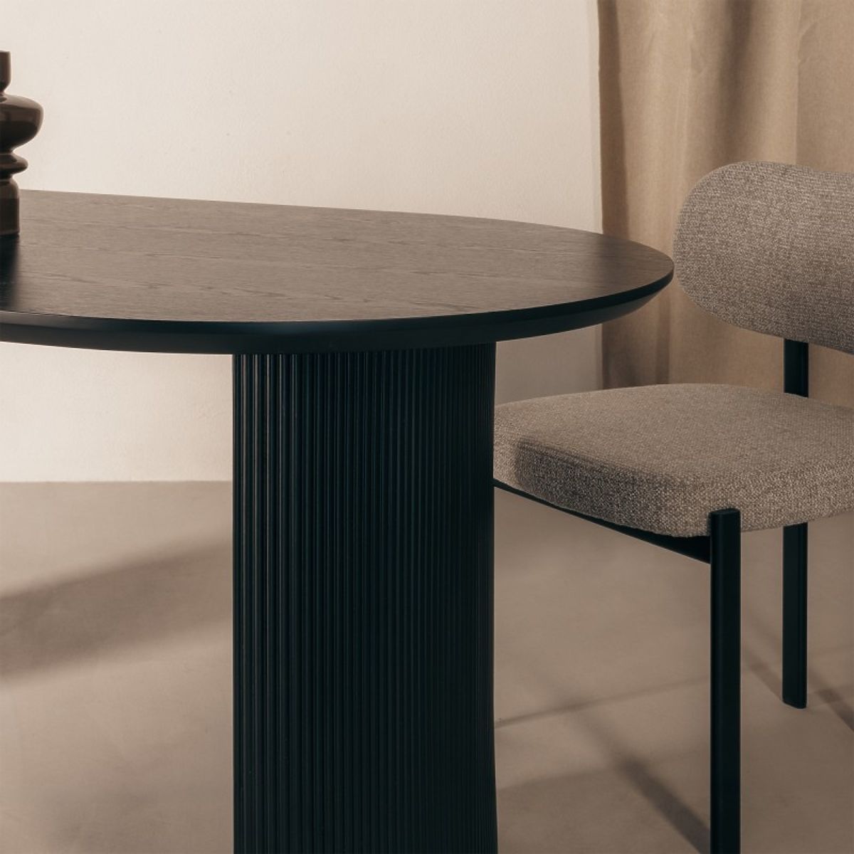 Stôl Maurizio je skvelou voľbou pre tých, ktorí chcú pridať do svojej jedálne neobyčajný prvok. Jeho oválna doska poskytne pohodlné miesto pre spoločné stolovanie a pevná, ryhovaná základňa zaručí stabilitu a jedinečný dizajn.