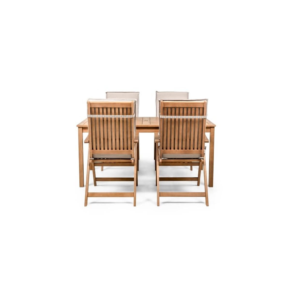 Lukahome.sk » Záhradný nábytok / Záhradné sety / Záhradný set Familis stôl 160 cm + 4 stoličky s nastaviteľnými operadlami a svetlosivými vankúšmi