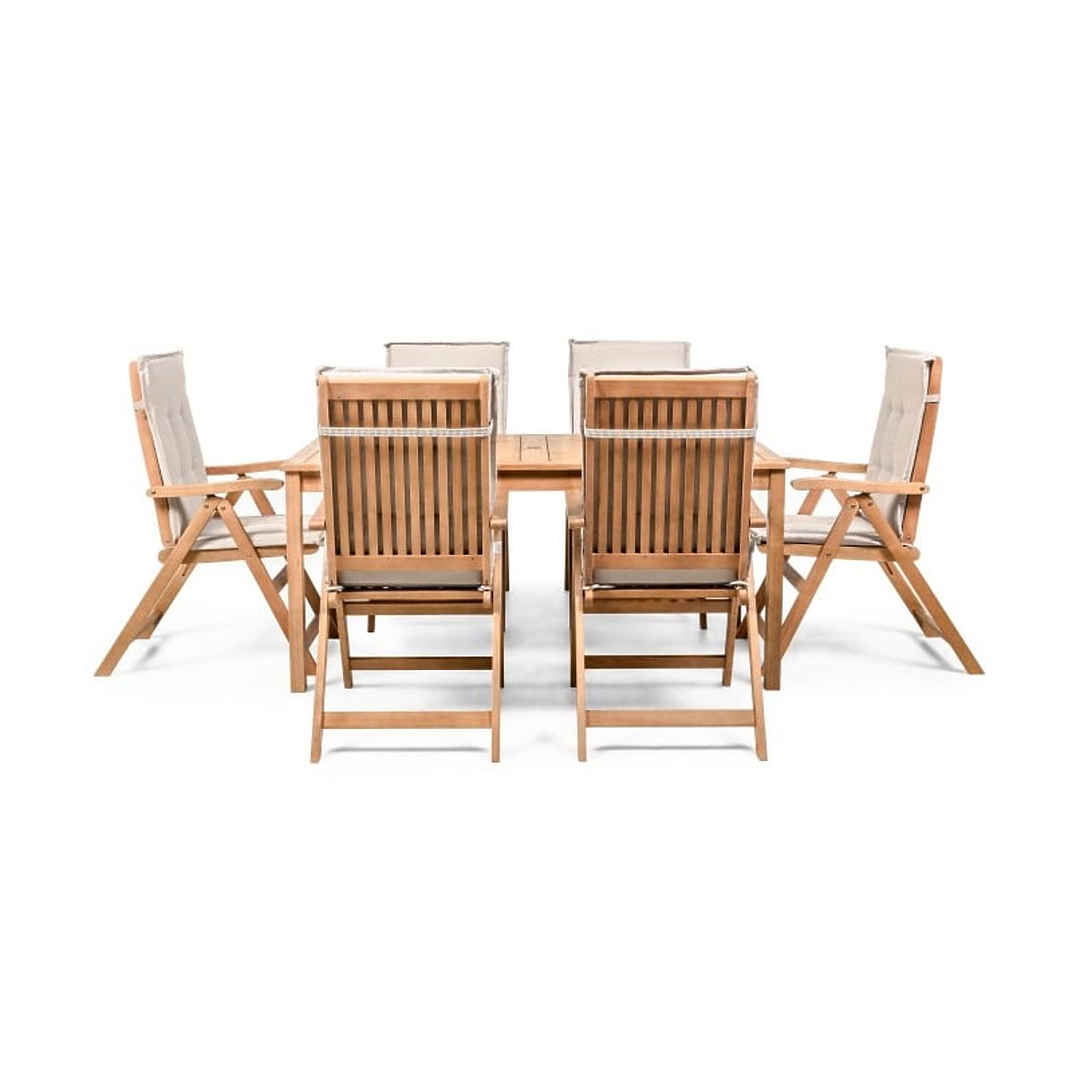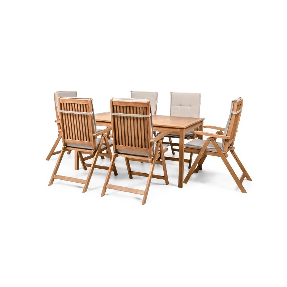 Lukahome.sk » Záhradný nábytok / Záhradné sety / Záhradný set Familis stôl 160 cm + 6 stoličiek s nastaviteľnými operadlami a svetlosivými vankúšmi