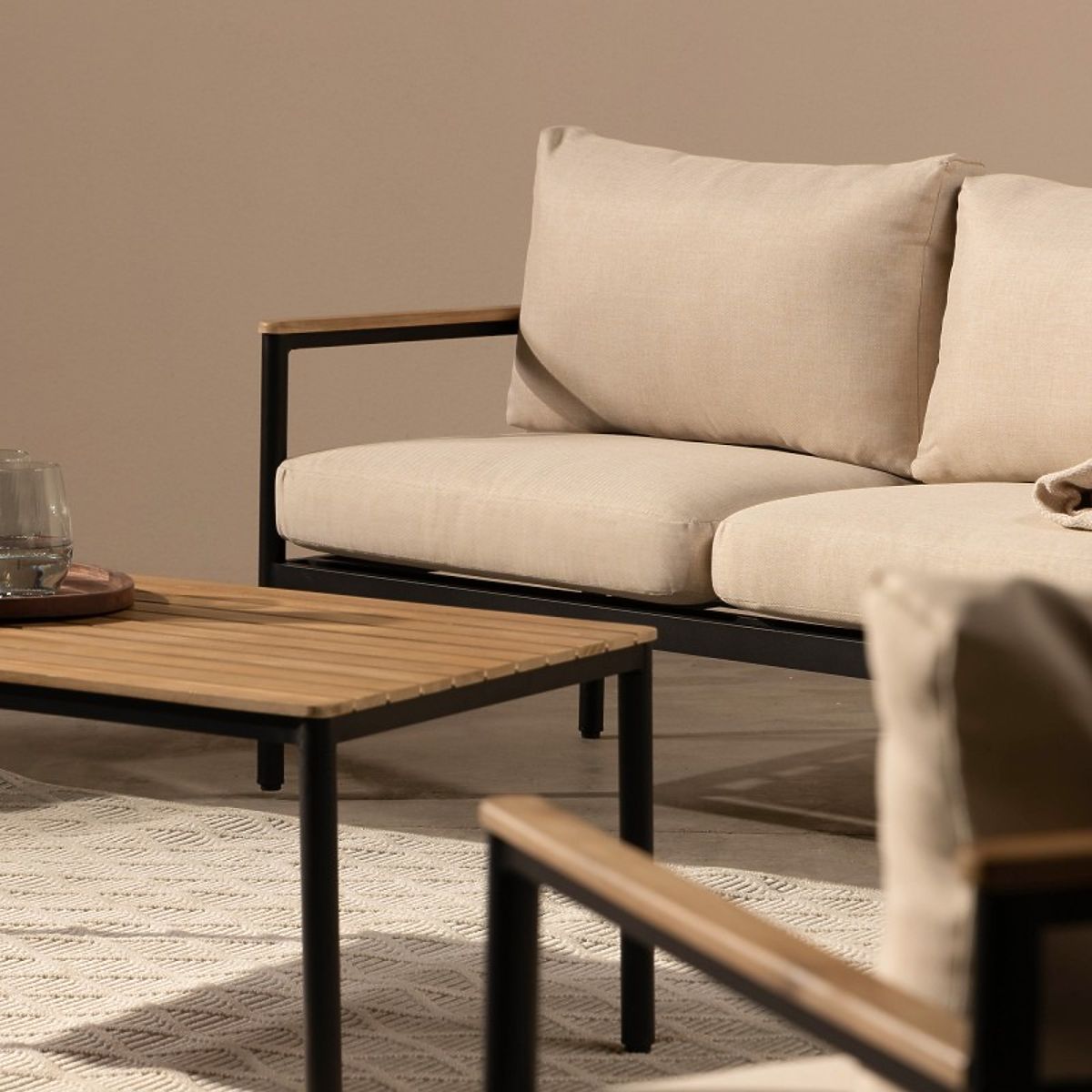 Lukahome.sk » Záhradný nábytok / Záhradné sety / Sada záhradného nábytku Porticello, hliníková, akáciové drevo FSC, teakový vzhľad, béžová/čierna