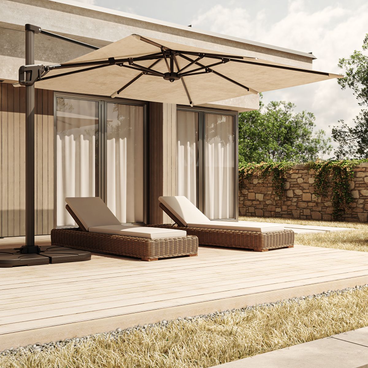 Slnečník Shade vám poskytuje plnú kontrolu nad relaxáciou – otočenie o 360° a nastavenie uhla sklonu zabezpečujú tieň presne tam, kde ho potrebujete. Pevná hliníková konštrukcia a odolný poťah zaručujú pohodlie a spoľahlivosť po mnoho sezón.