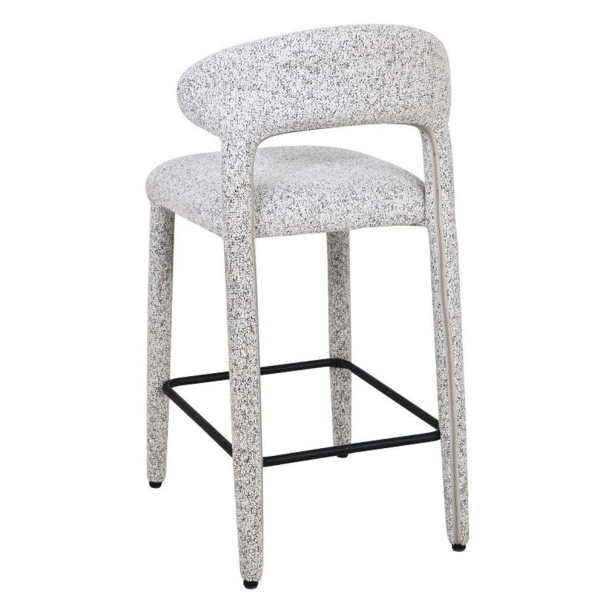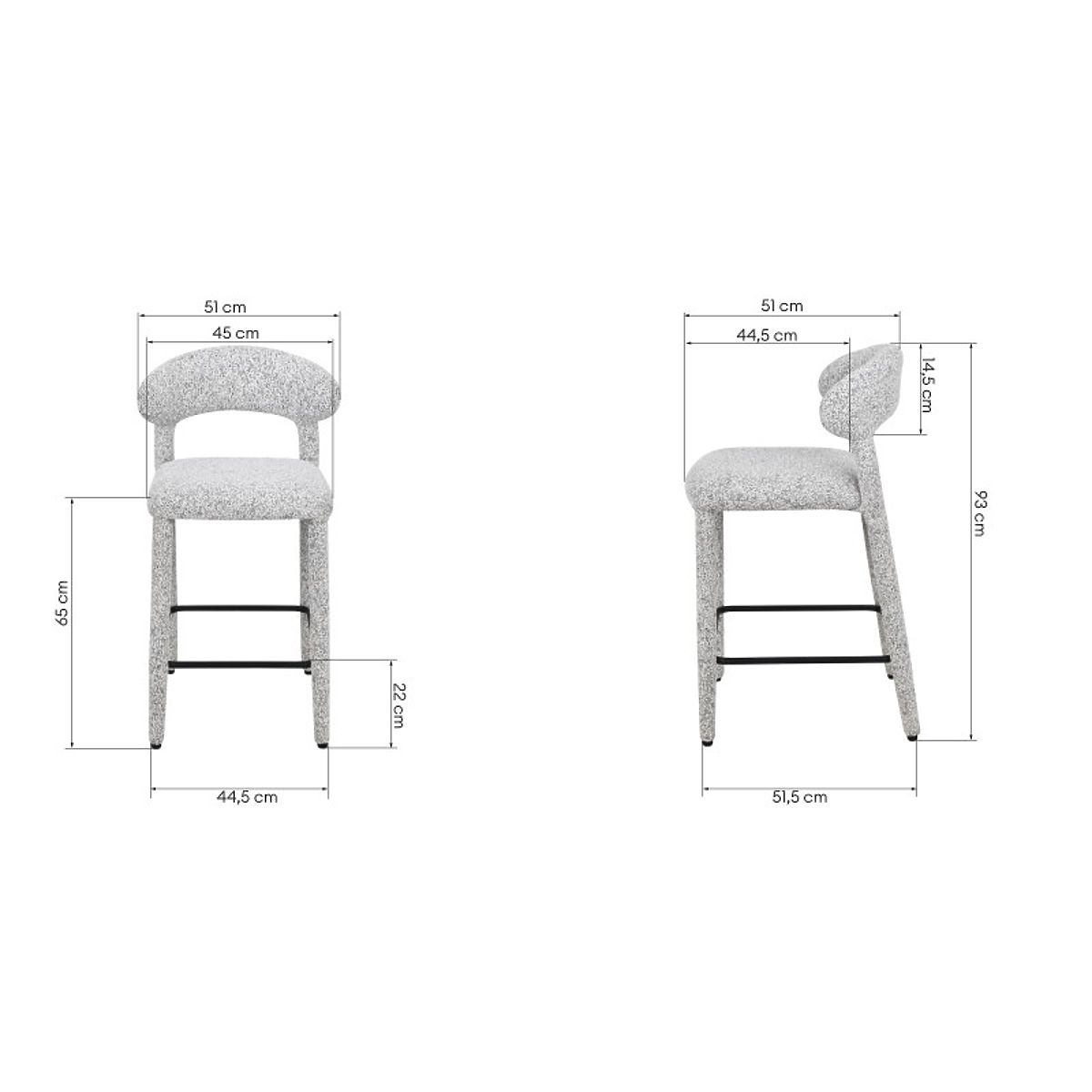 Barová stolička Hiroki je štýlovou a funkčnou voľbou, ktorá sa skvele hodí na umiestnenie pri kuchynskom ostrovčeku, čím vytvára pohodlné miesto na konzumáciu jedál. Jej melírované čalúnenie s viacfarebným vzorom dodáva interiéru útulný a elegantný charakter.