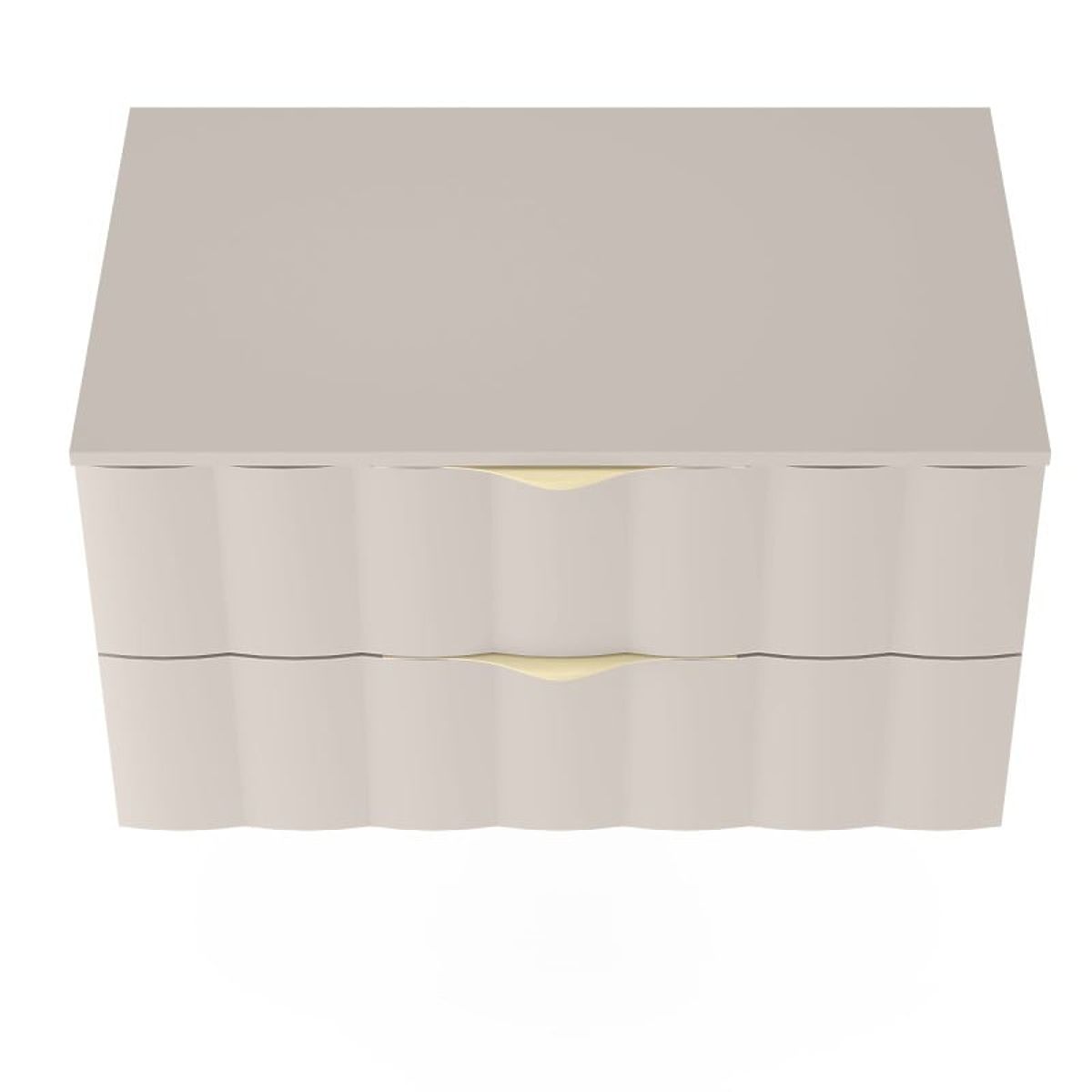 Lukahome.sk » Kúpeľňa a WC / Kúpeľňové skrinky / Skrinka pod umývadlo na dosku Omi 80 cm, vlnitý čelný panel, zlaté úchyty, kašmírová béžová
