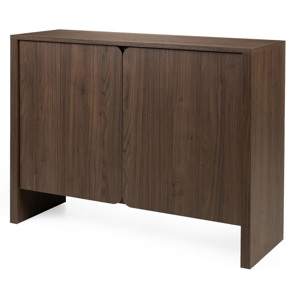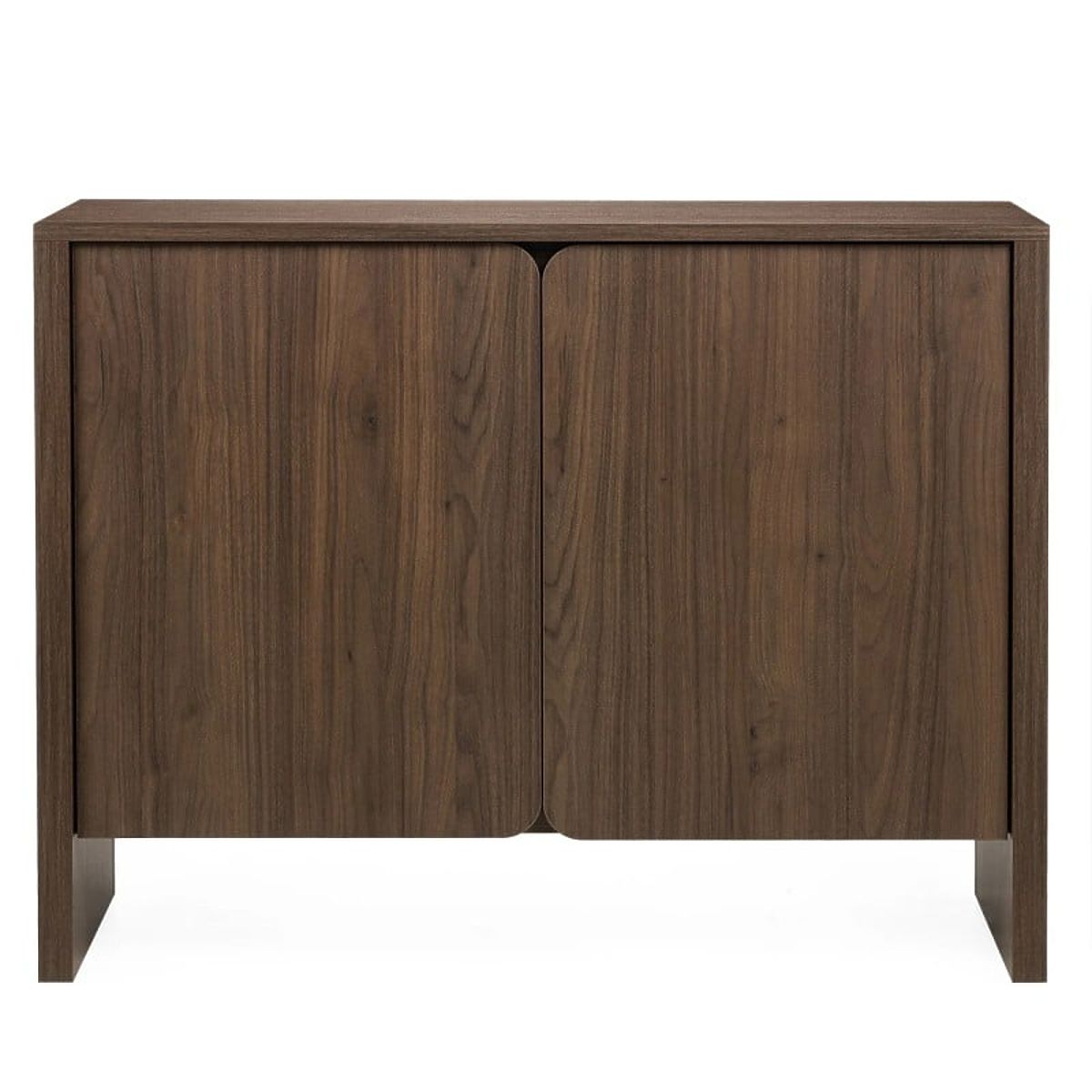 Dvojdverová komoda Moku s orechovou farbou a zaoblenými plochami. .. viac