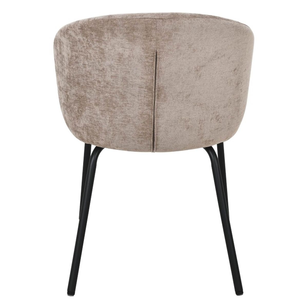 Stolička Larisa kombinuje modernú eleganciu s pohodlím. Jej mäkké sedadlo a zaoblené operadlo sú potiahnuté príjemnou hnedou látkou, ktorá dodáva každému interiéru teplo. Čierne, pevné nohy poskytujú výrazný kontrast a stabilitu, podčiarkujúc jej štýlový charakter.