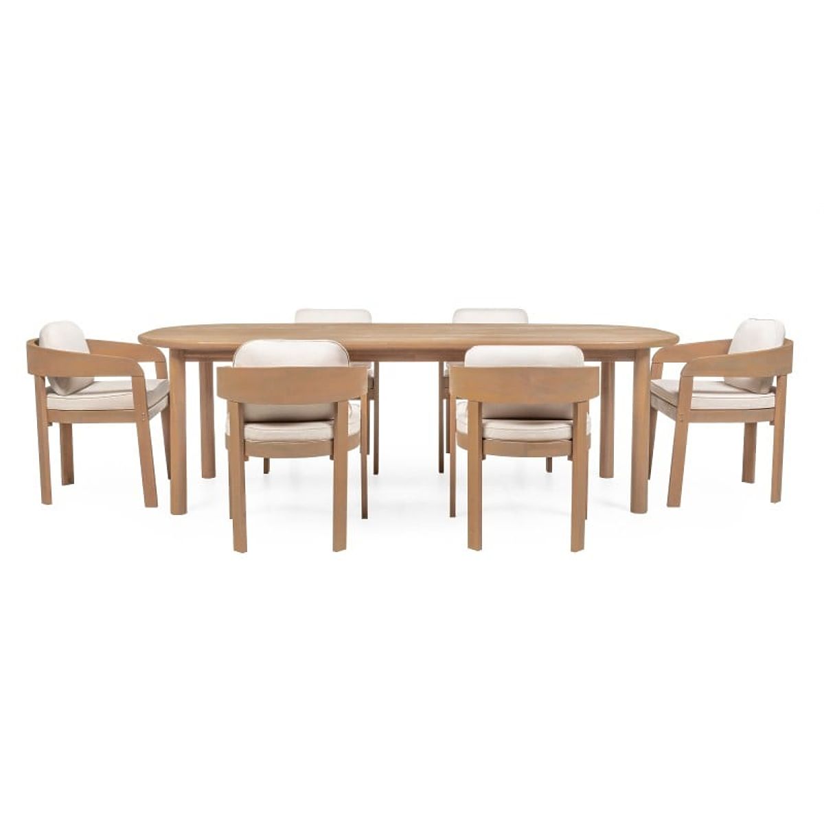 Lukahome.sk » Záhradný nábytok / Záhradné sety / Záhradný set Satori II, stôl 240 cm + 6 stoličiek, akáciové drevo FSC, teakový vzhľad, béžový, zaobl