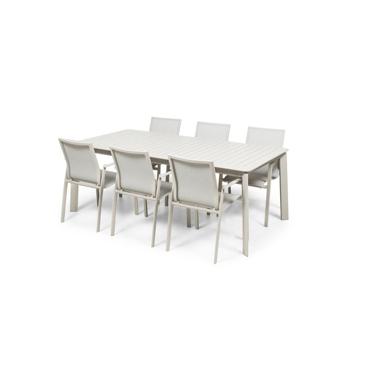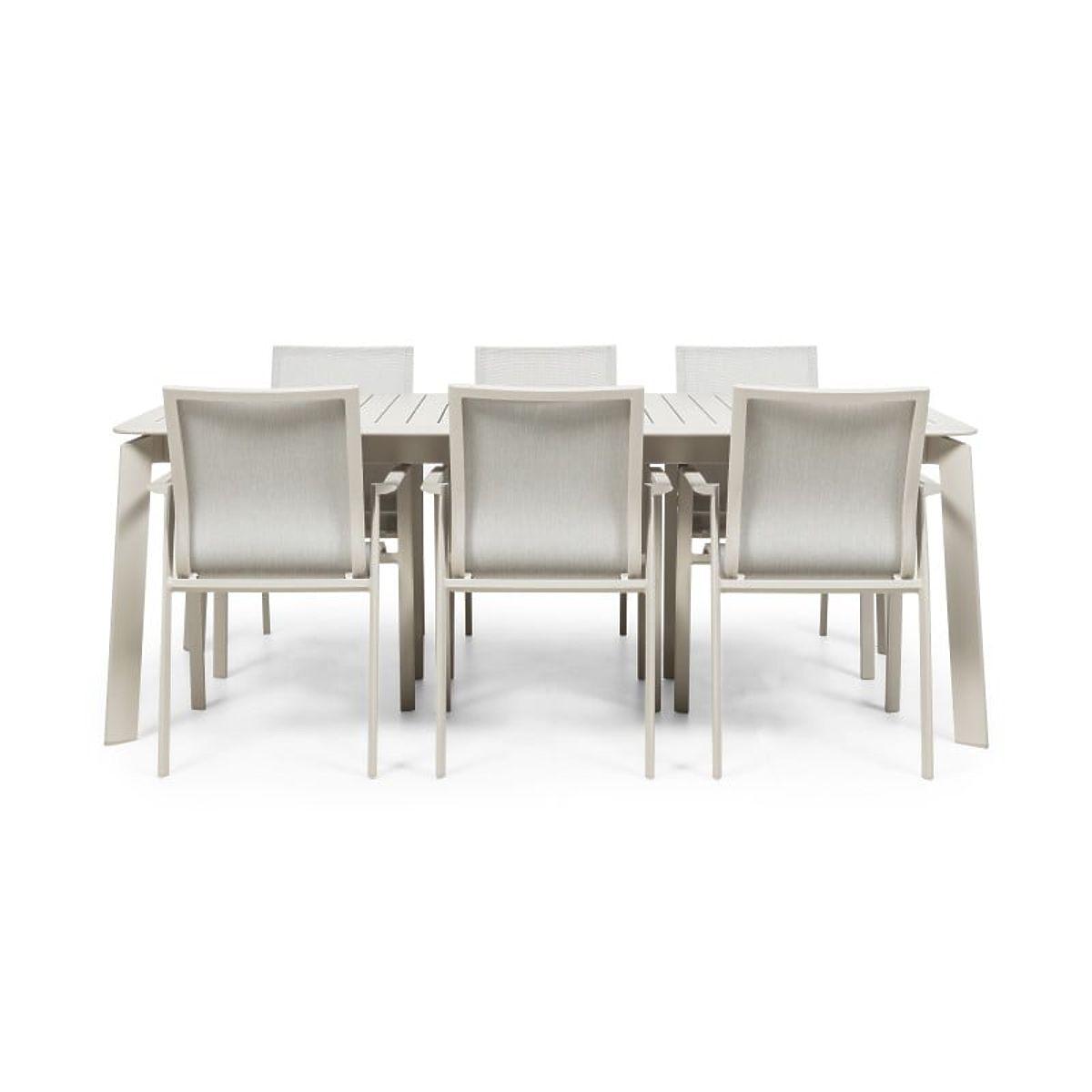 Lukahome.sk » Záhradný nábytok / Záhradné sety / Záhradný set Canelli, rozkladací stôl 205-286 cm + 6 stoličiek, hliníkový, svetlo béžový