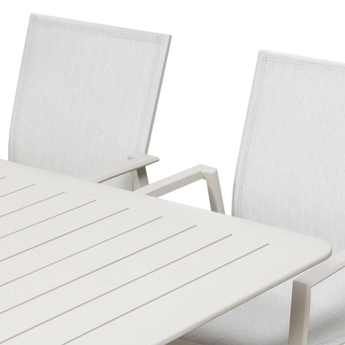 Canelli je záhradný set navrhnutý pre moderné priestory a pohodlný oddych. Hliníková konštrukcia v jemnom odtieni béžovej spája eleganciu s odolnosťou, čo zaisťuje skvelú výdrž v premenlivých poveternostných podmienkach. Vďaka funkcii rozkladania stola ľahko pripravíte miesto pre väčšie stretnutia a spoločné chvíle na čerstvom vzduchu.
