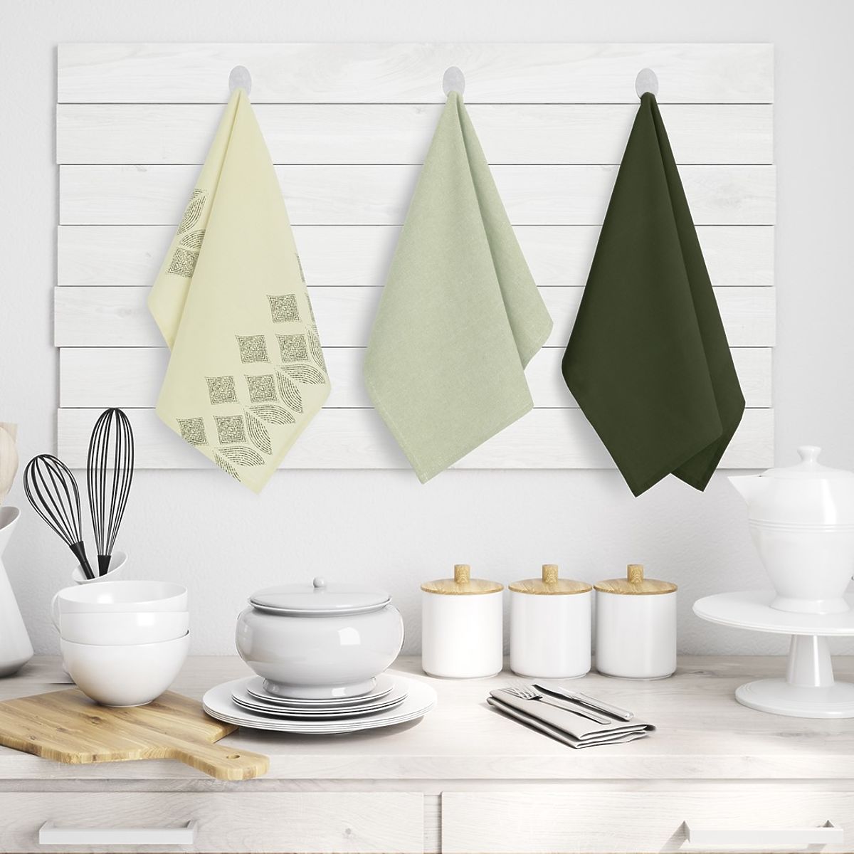 Sada troch kuchynských utierok z bavlny s moderným motívom. .. viac